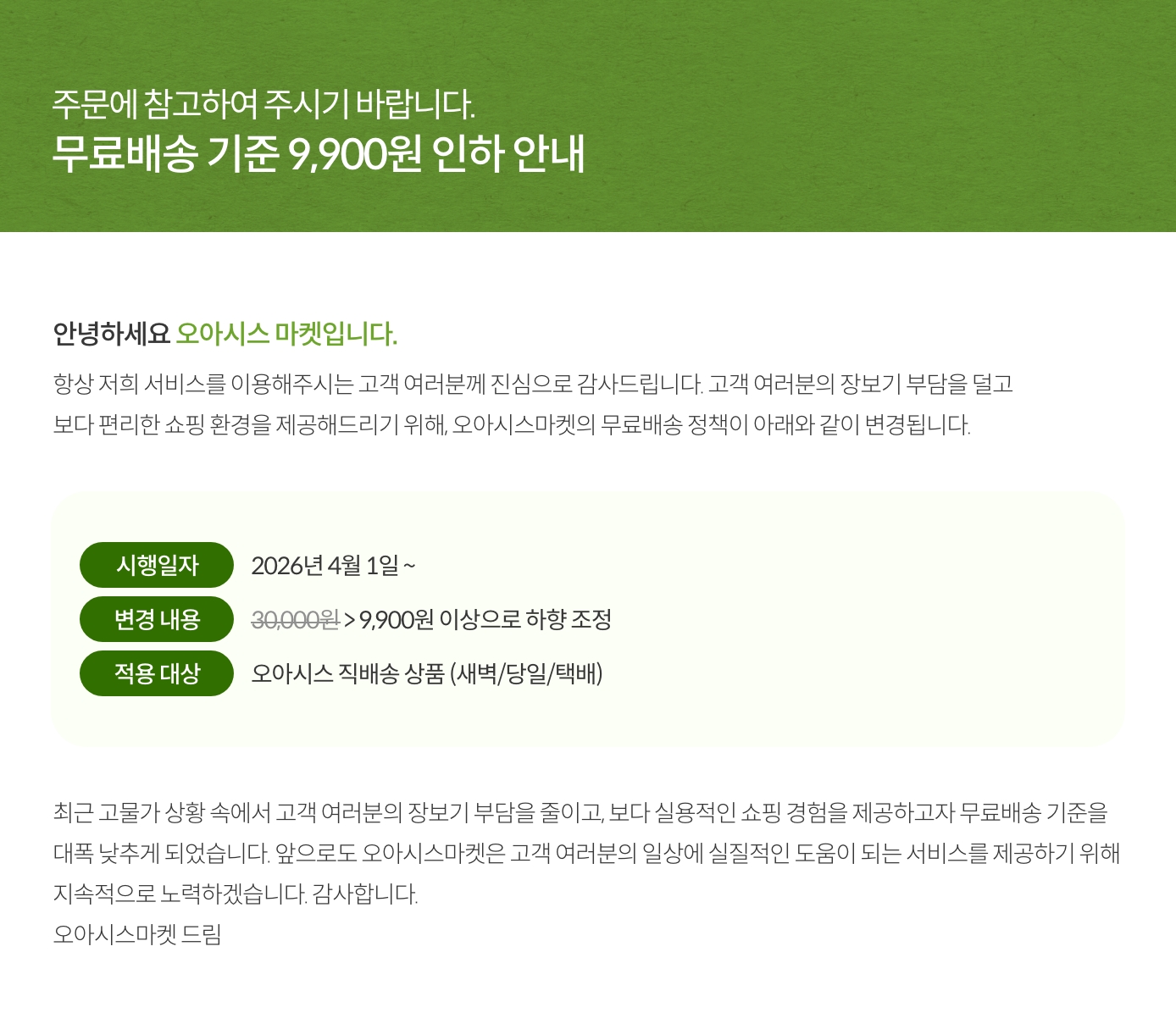 [공지] 무료배송 기준 9,900원 인하 안내