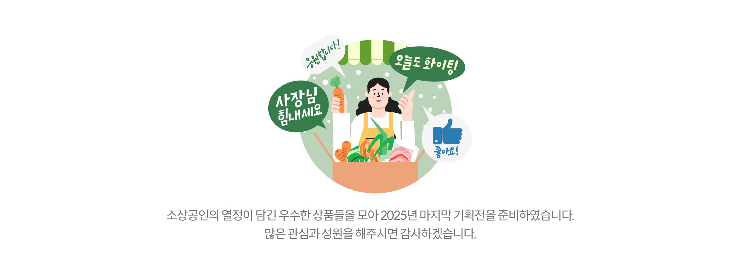 소상공인의 열정이 담긴 우수한 상품들을 모아 2025년 마지막 기획전을 준비하였습니다. 많은 관심과 성원을 해주시면 감사하겠습니다.