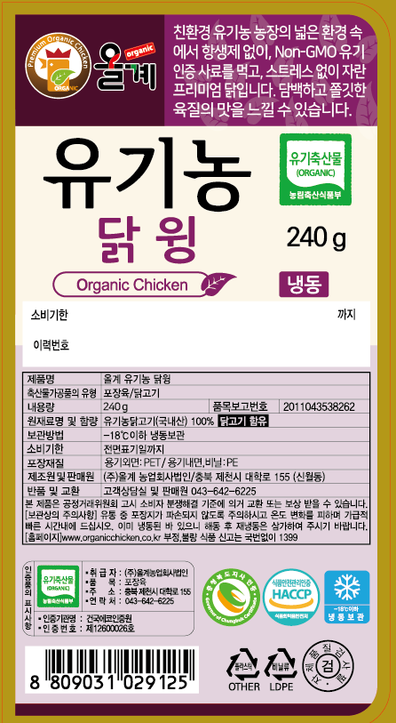 [유기농, HACCP, 국산, 無항생제, NON GMO]