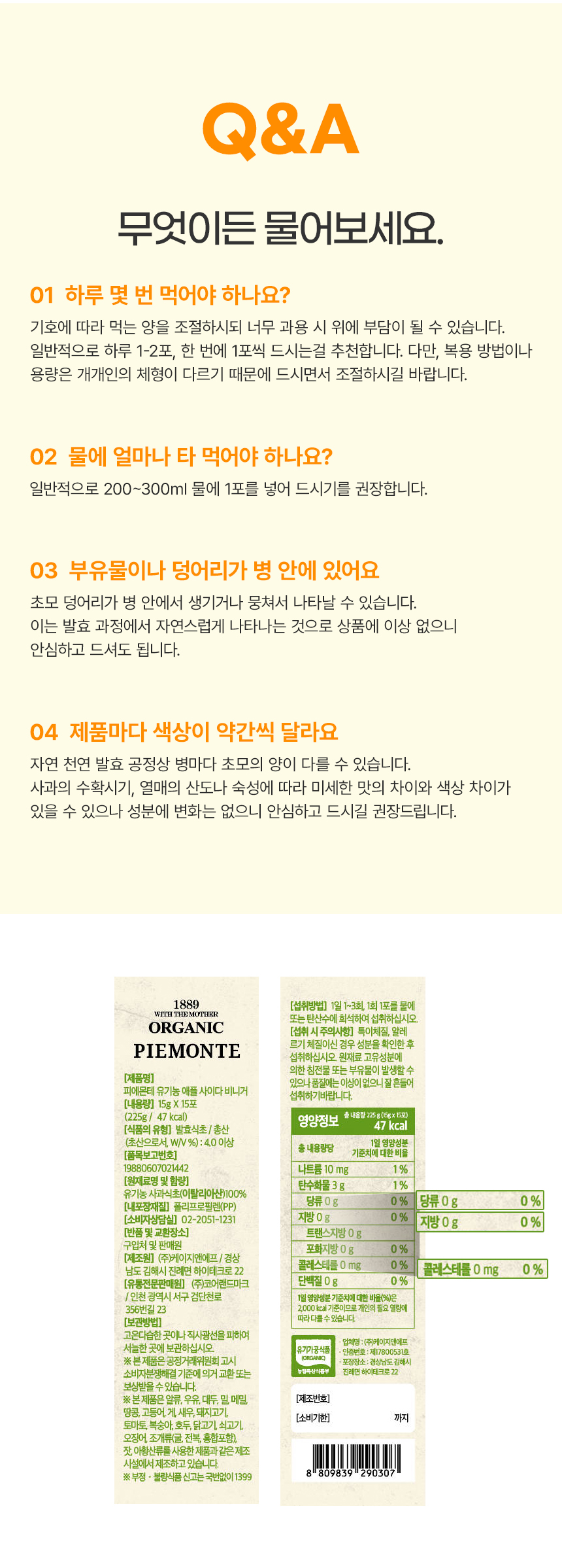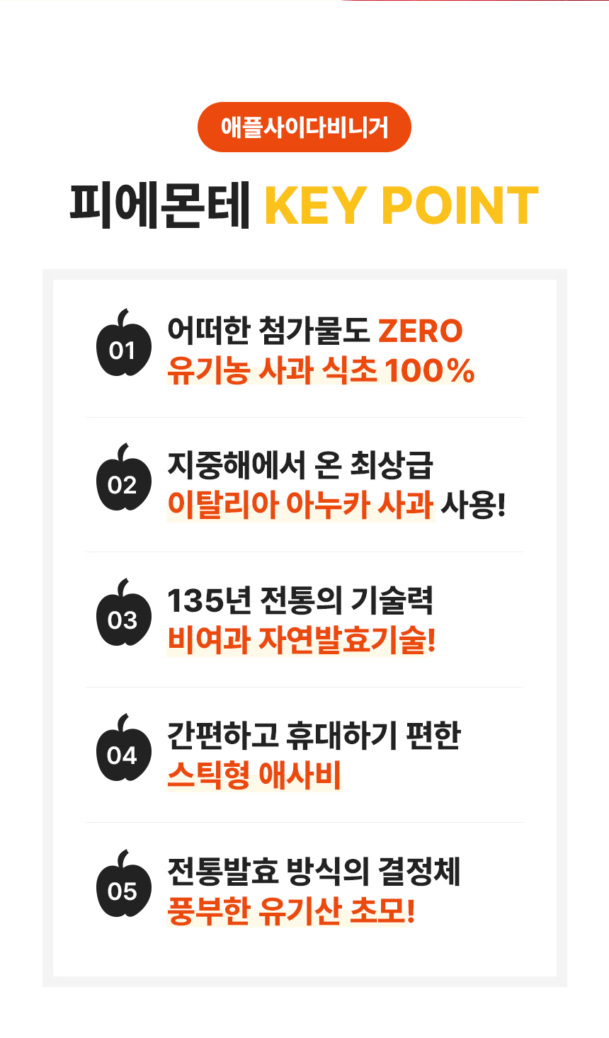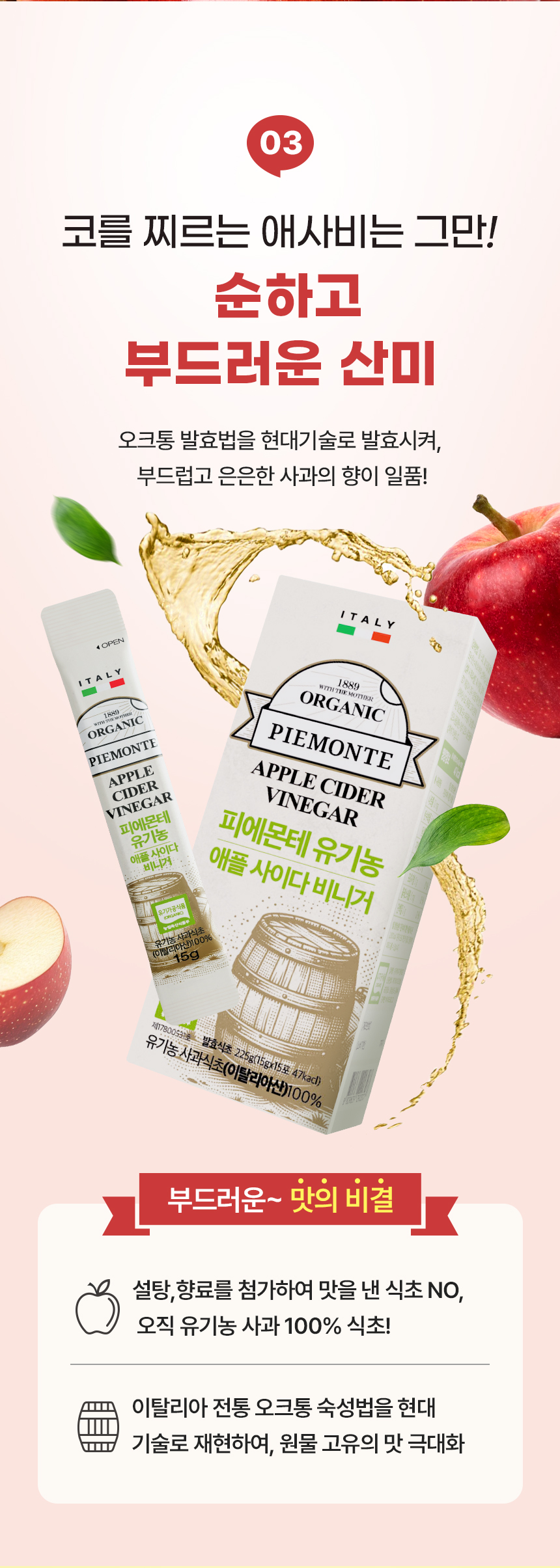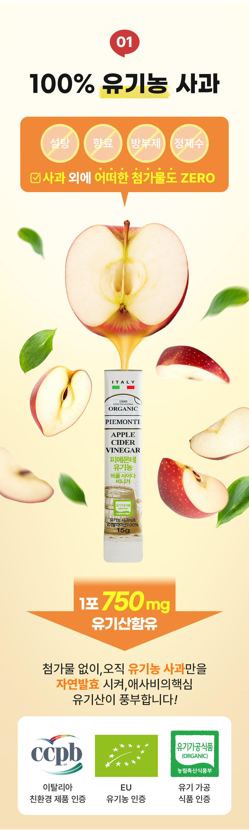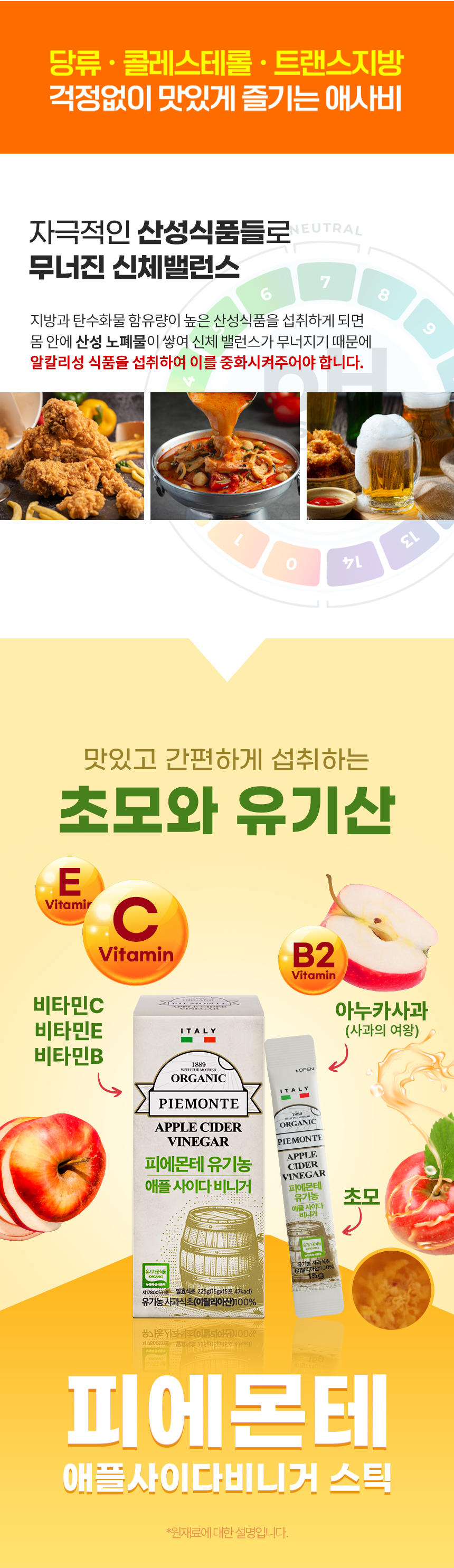 피에몬테 이탈리아 사과식초 스틱형(15g x 15포) 애사비 애플사이다비네거
