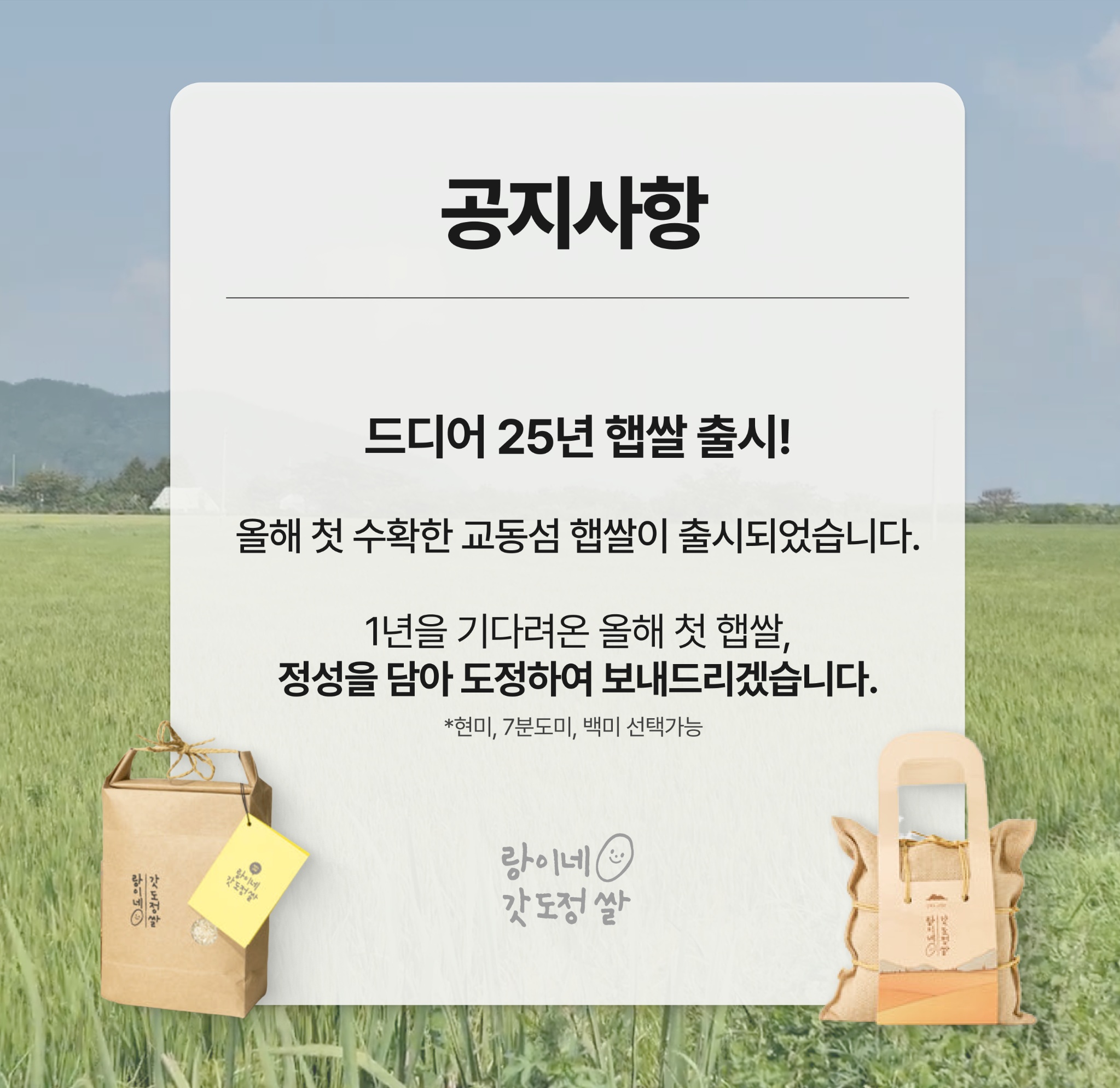 25년 출시, 매일 주문량을 확인하여 당일 도정한 신선한 쌀만 보내드리고 있습니다.