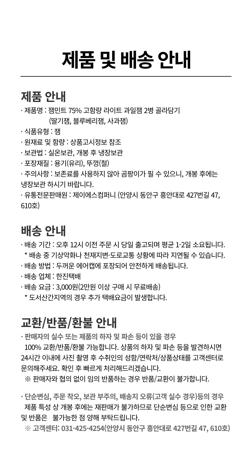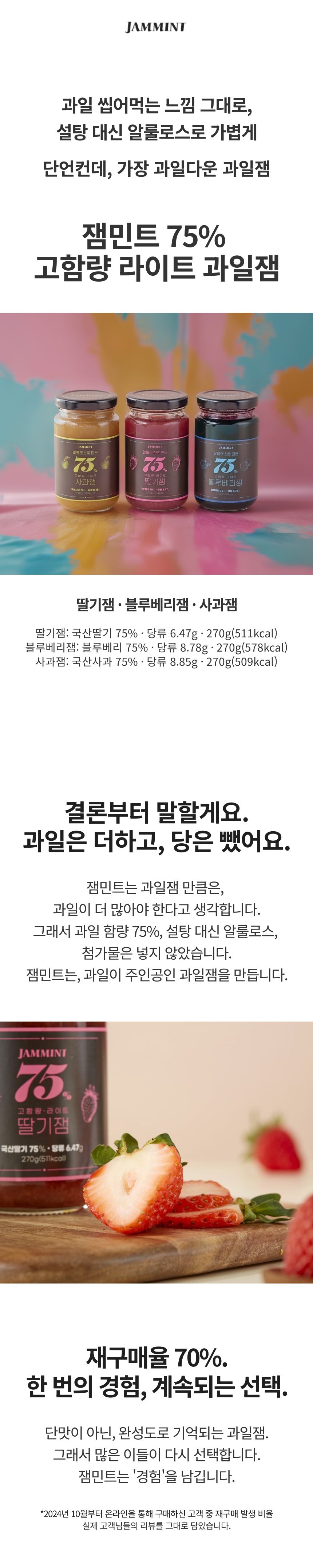 JAMMINT 75% 고함량 라이트 과일잼 3종(딸기잼, 블루베리잼, 사과잼)
