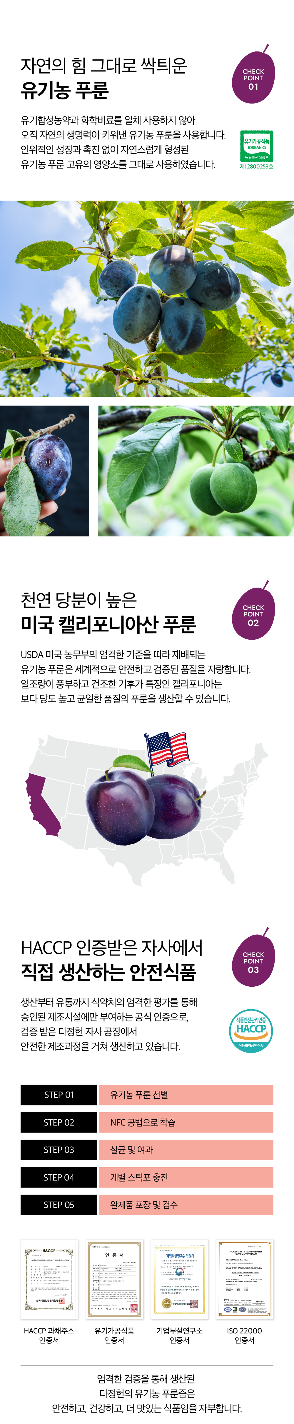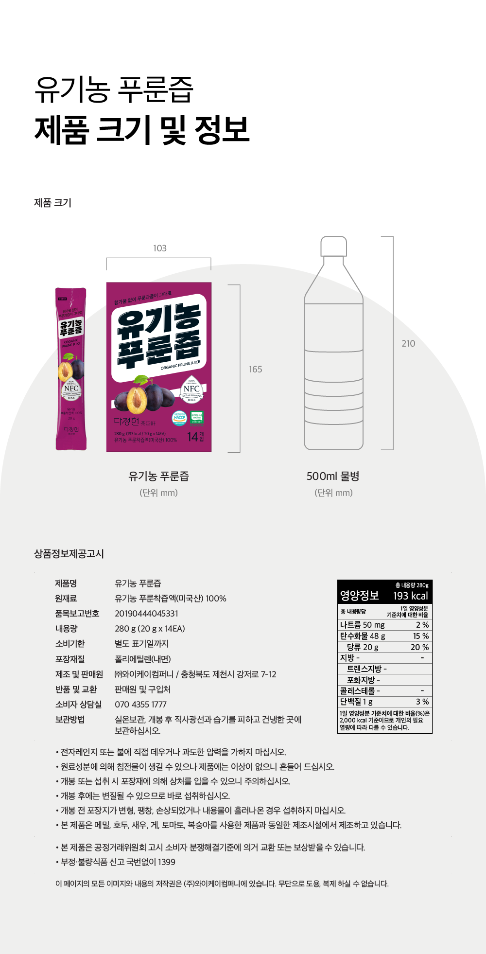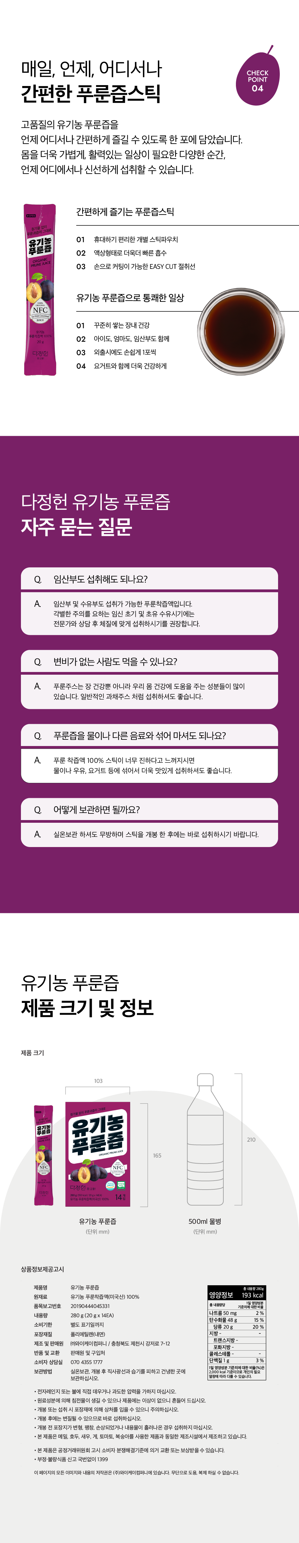 • 다정헌 유기농 푸룬즙 NFC 착즙 유기농 푸룬주스 100% 스틱 14입