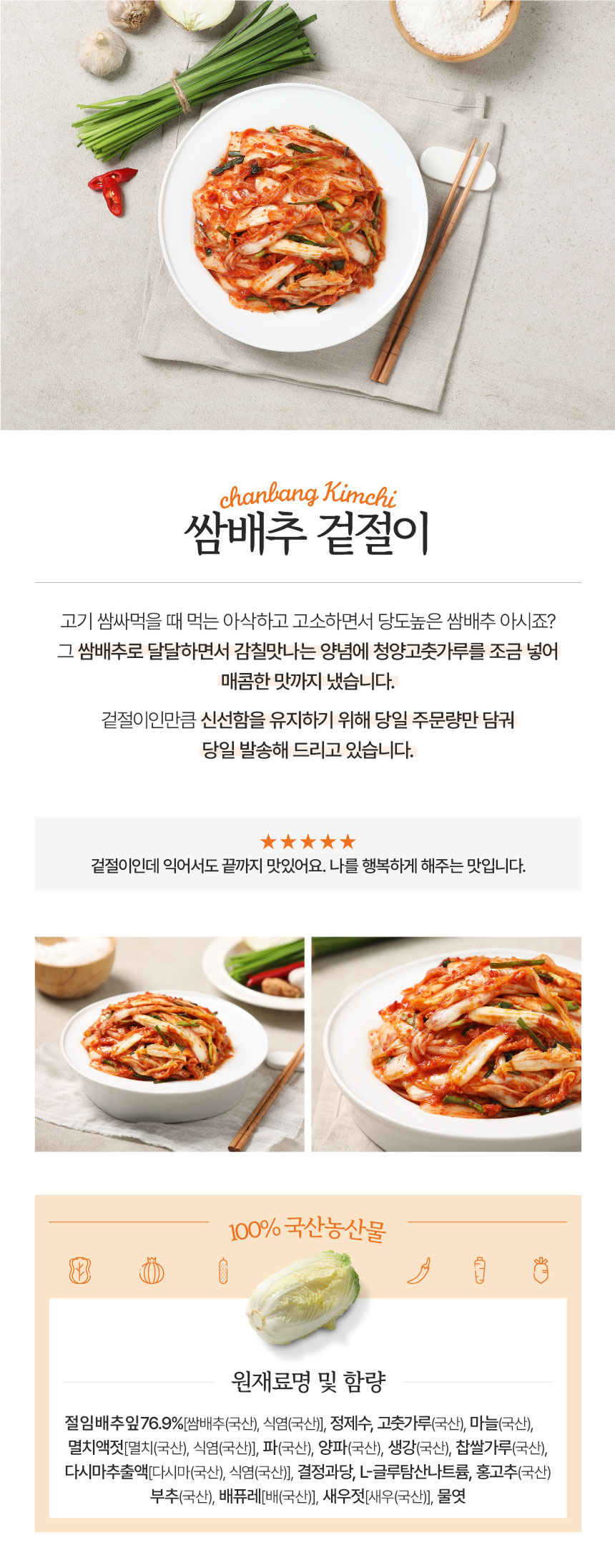 1. 신선하고 안전한 원재료를 사용하여 집에서 담근 김치처럼 자연스러운 맛 추구합니다.
