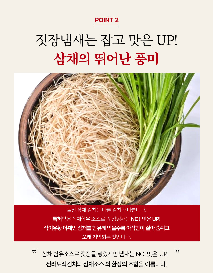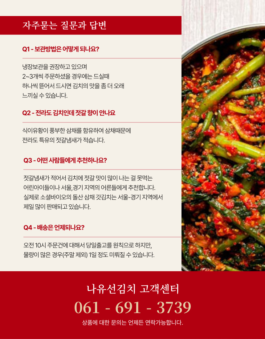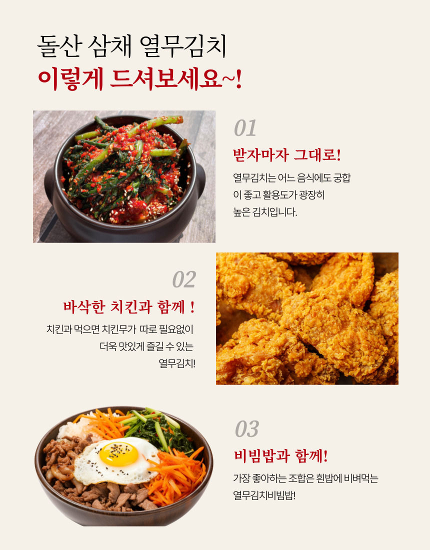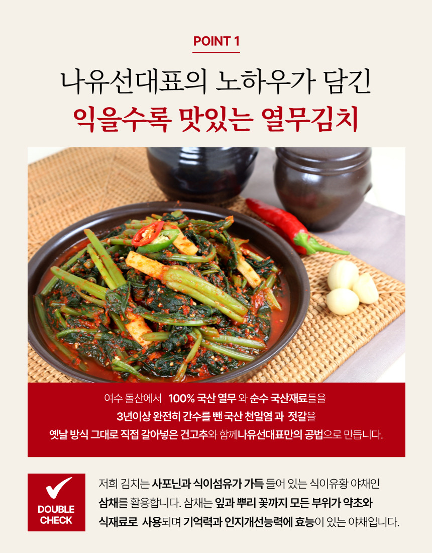 • 100%국내산 여수 돌산 삼채 열무김치 2kg