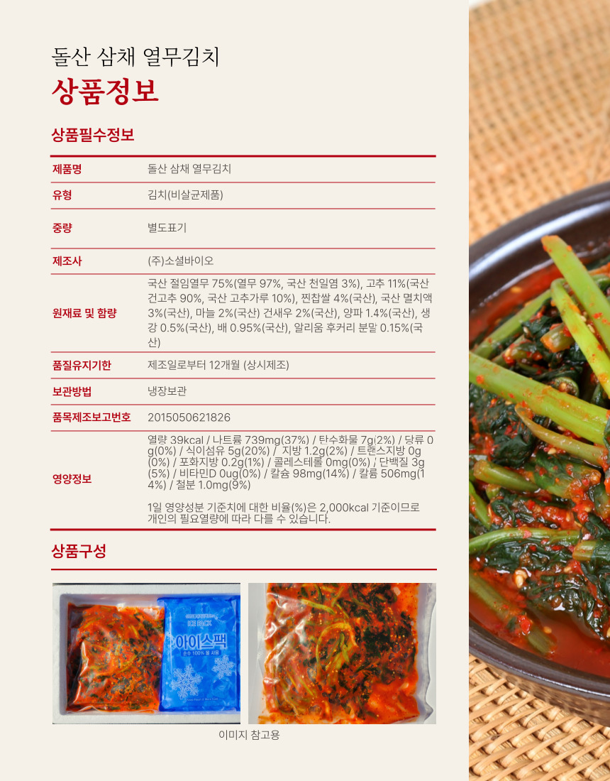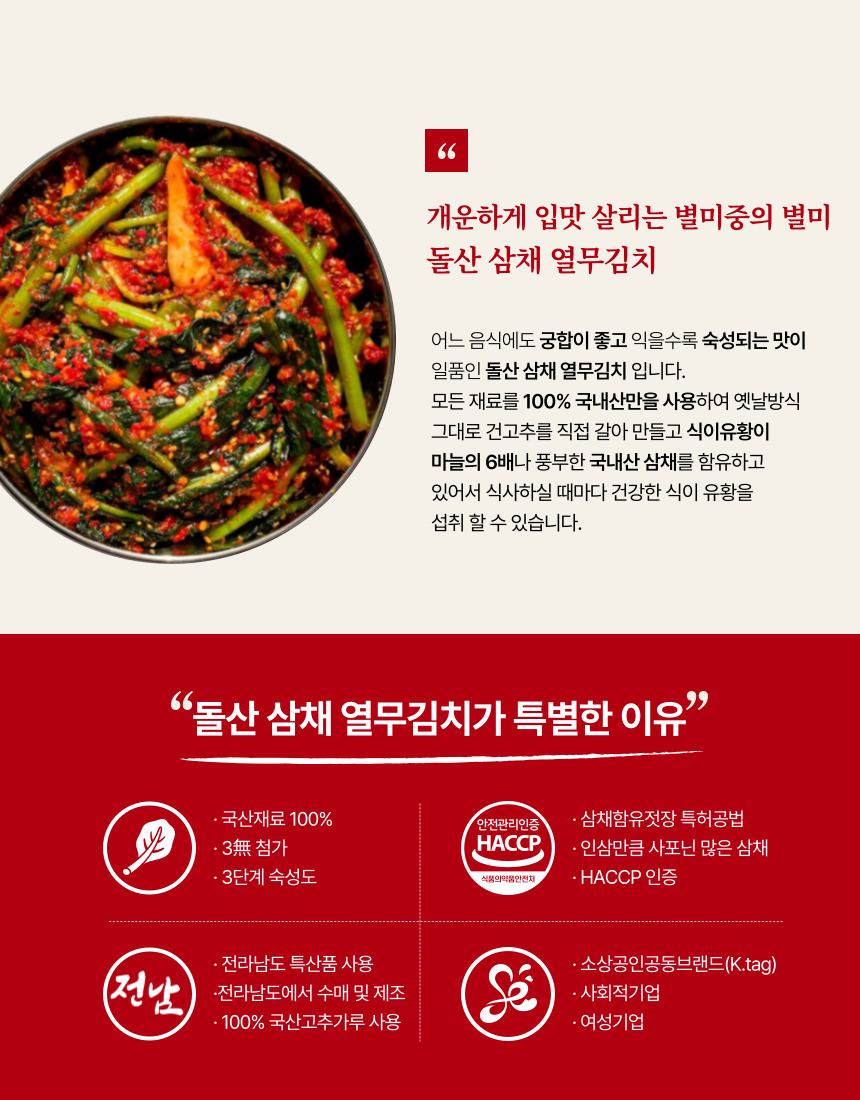 사회적기업 여수 특산품 돌산 삼채 열무김치