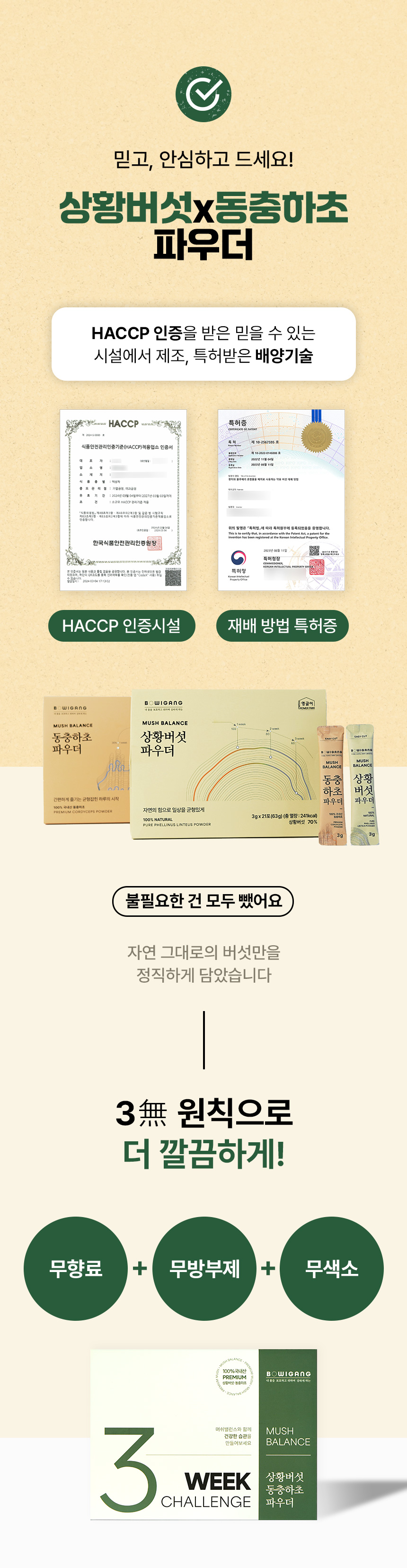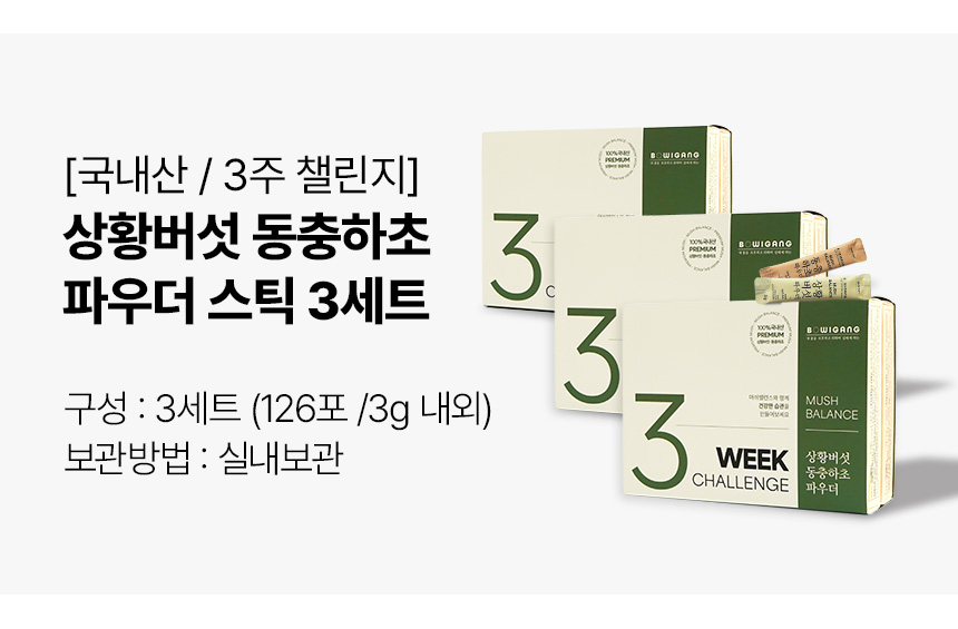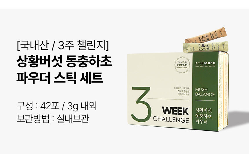• [3주 챌린지] 국내산 상황버섯 동충하초 파우더 스틱 세트 42포~168포