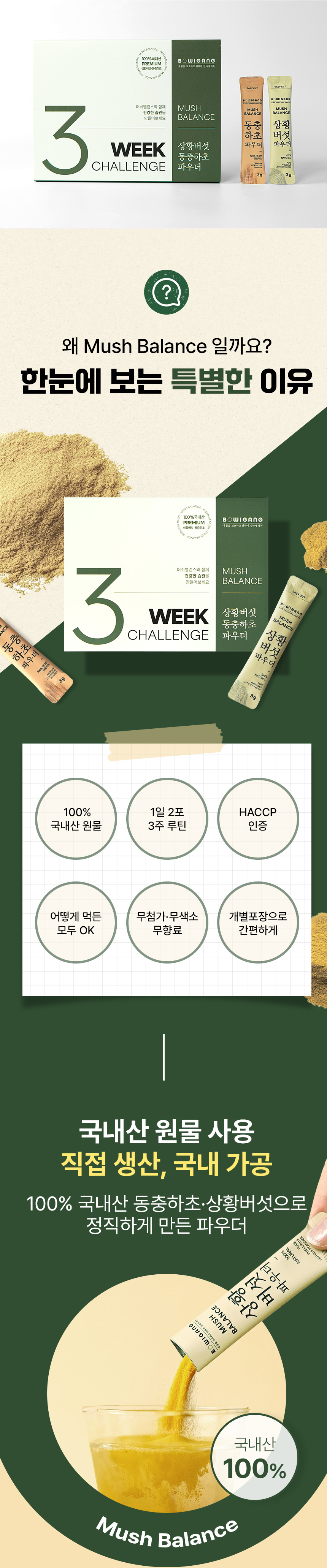 [3주 챌린지] 국내산 상황버섯 동충하초 파우더 스틱 세트 42포~168포
