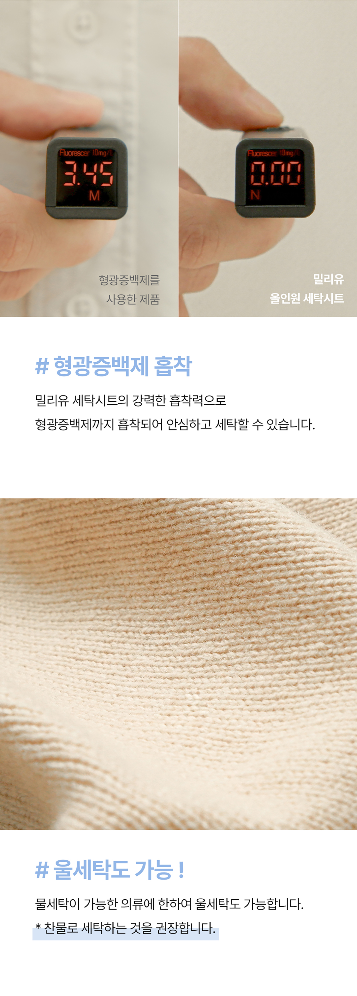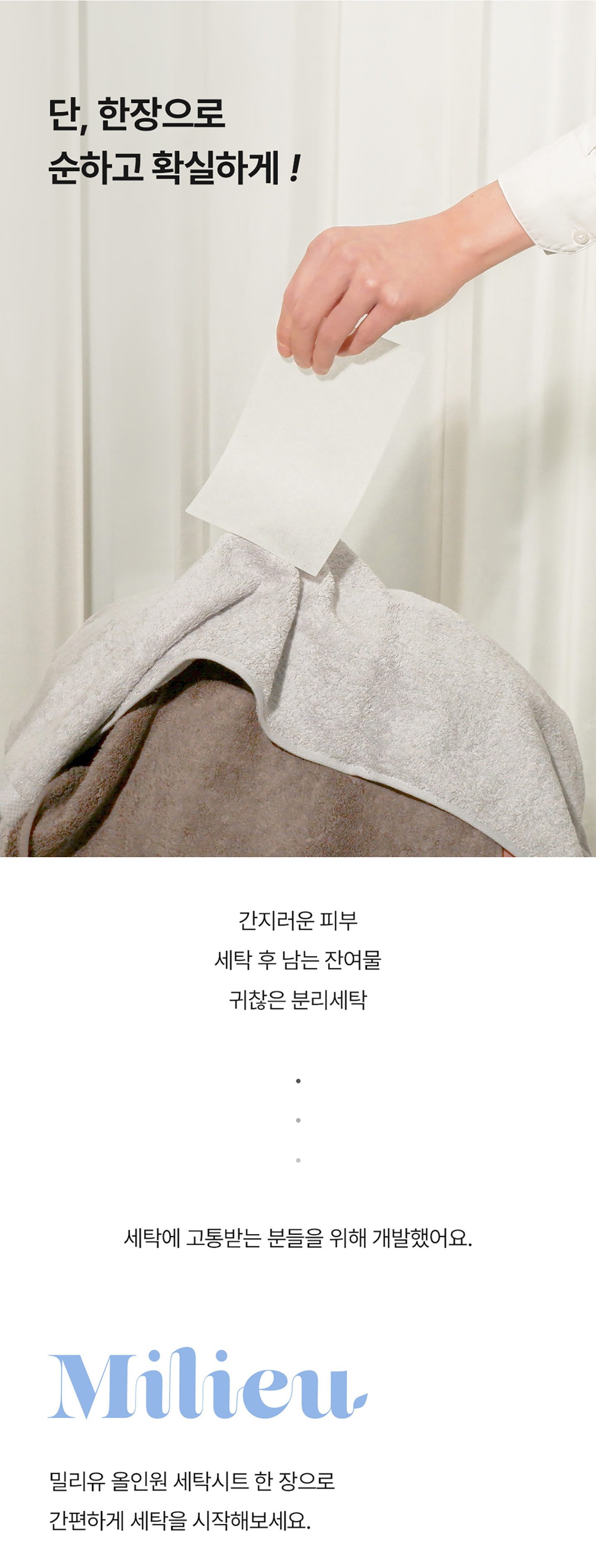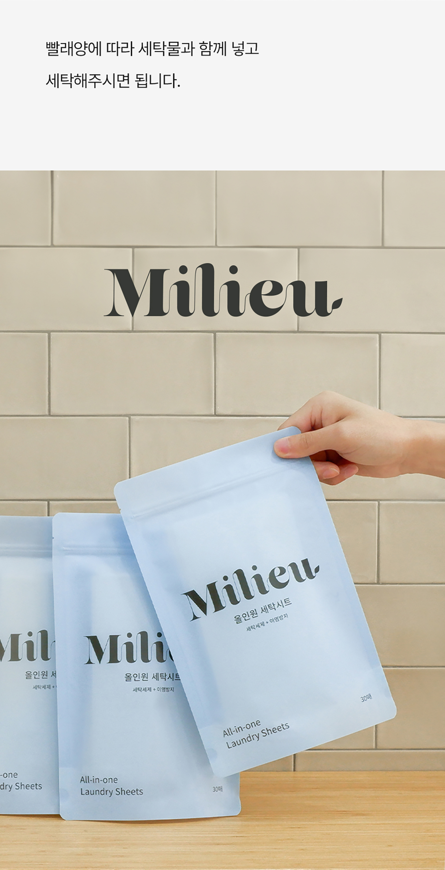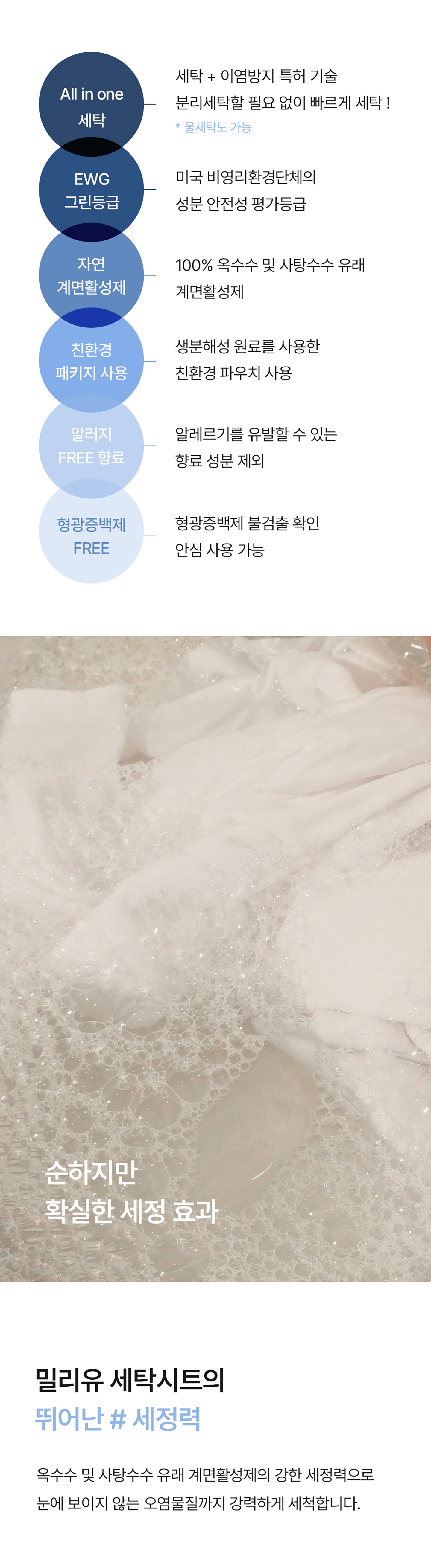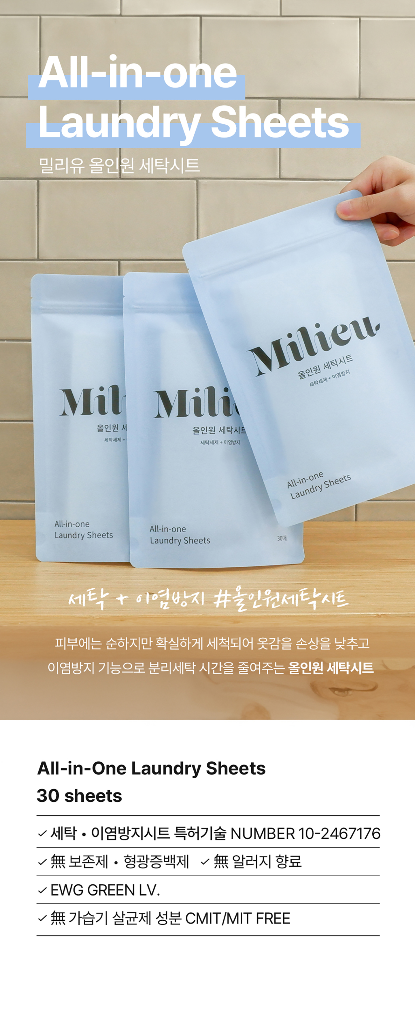 • 밀리유 올인원 세탁시트(30매) 이염방지 일반 드럼 겸용 세탁세제