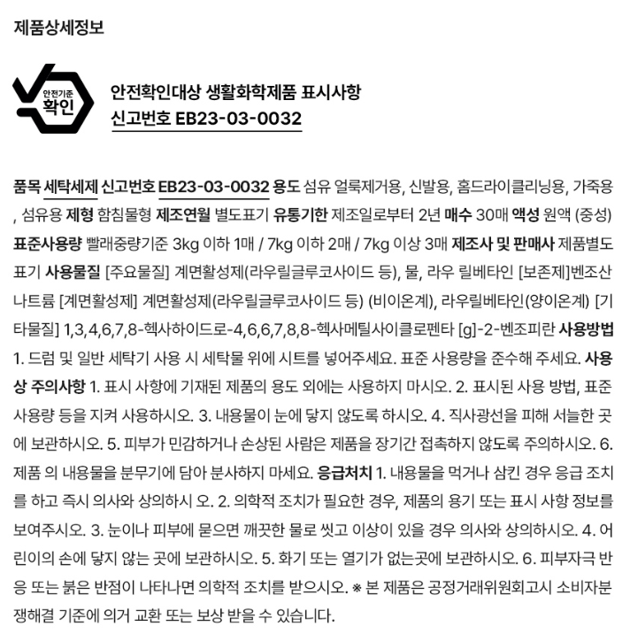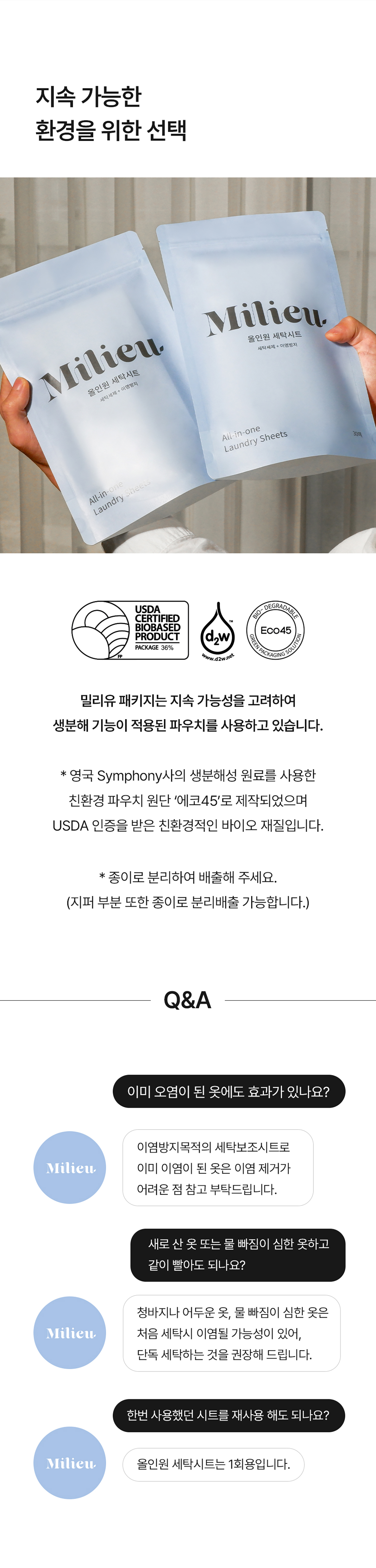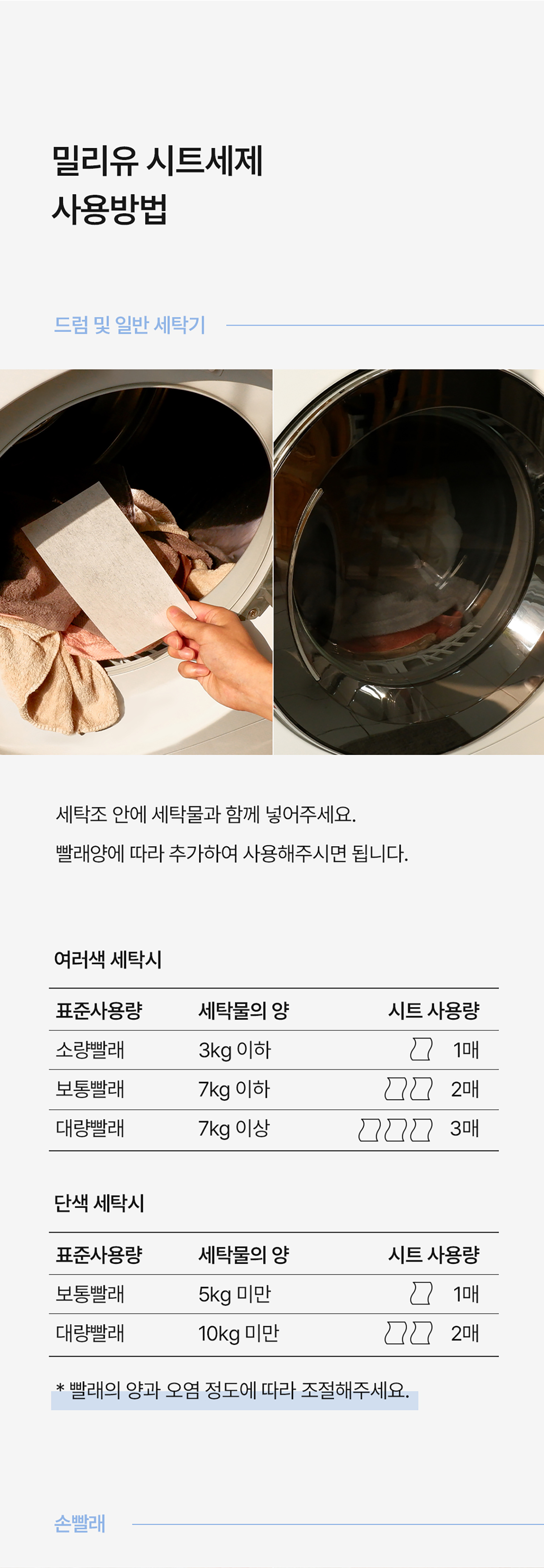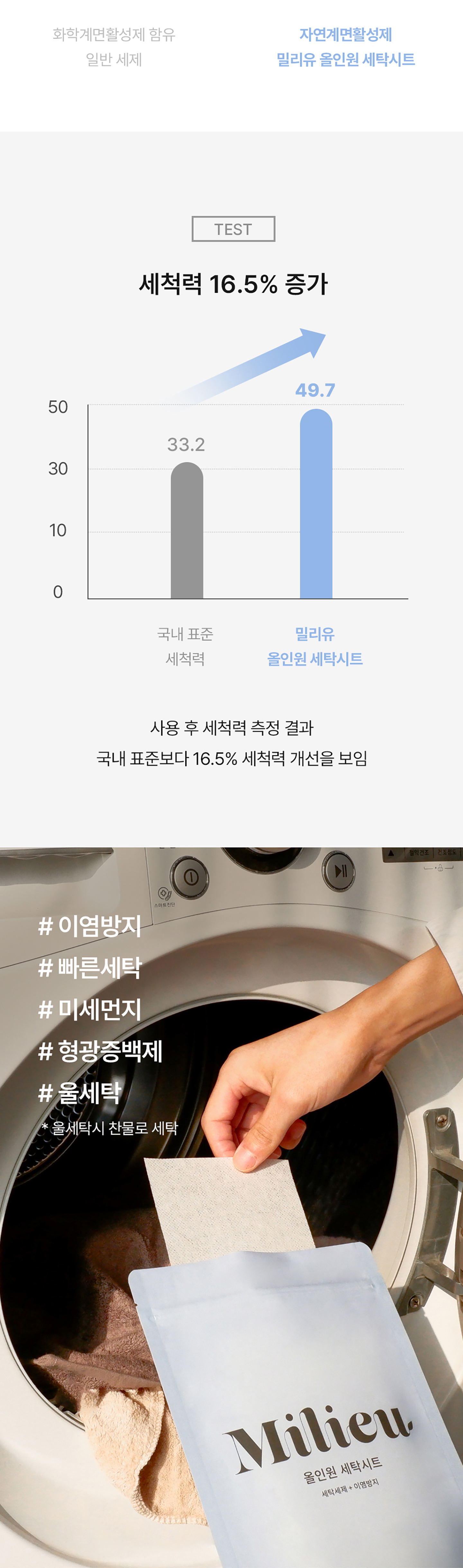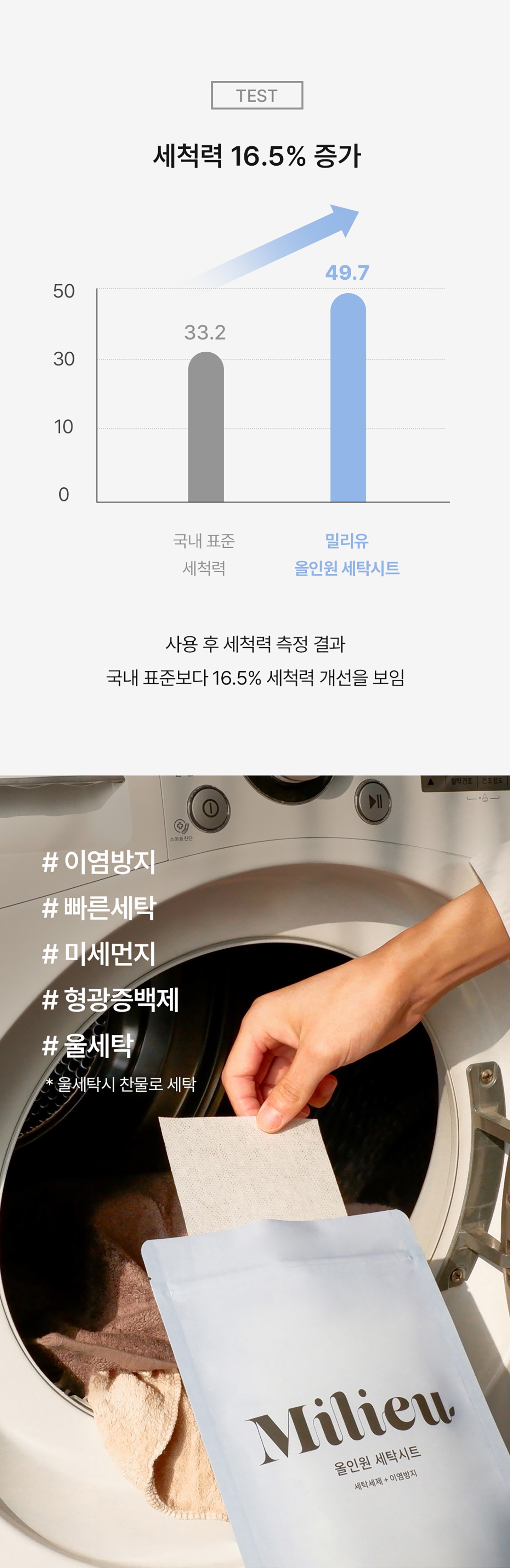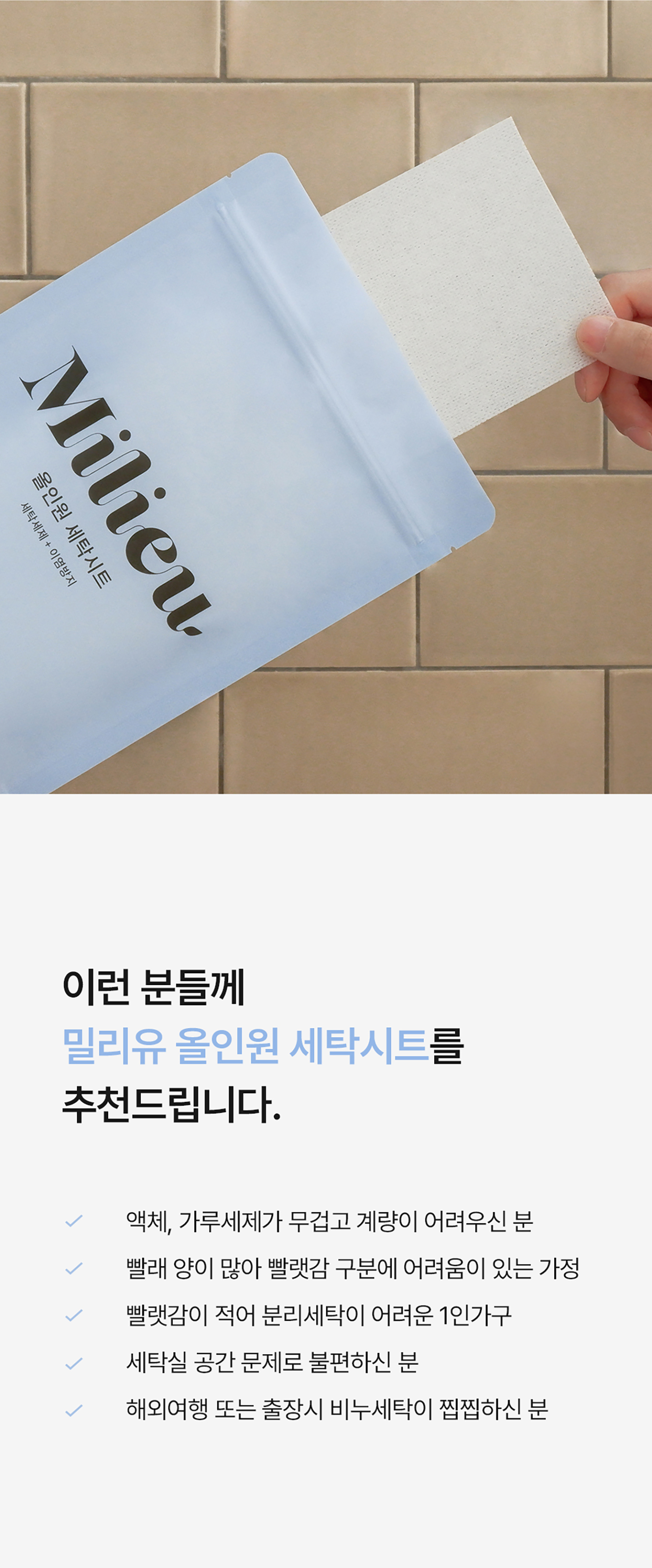 • 밀리유 올인원 세탁시트(30매) 이염방지 일반 드럼 겸용 세탁세제