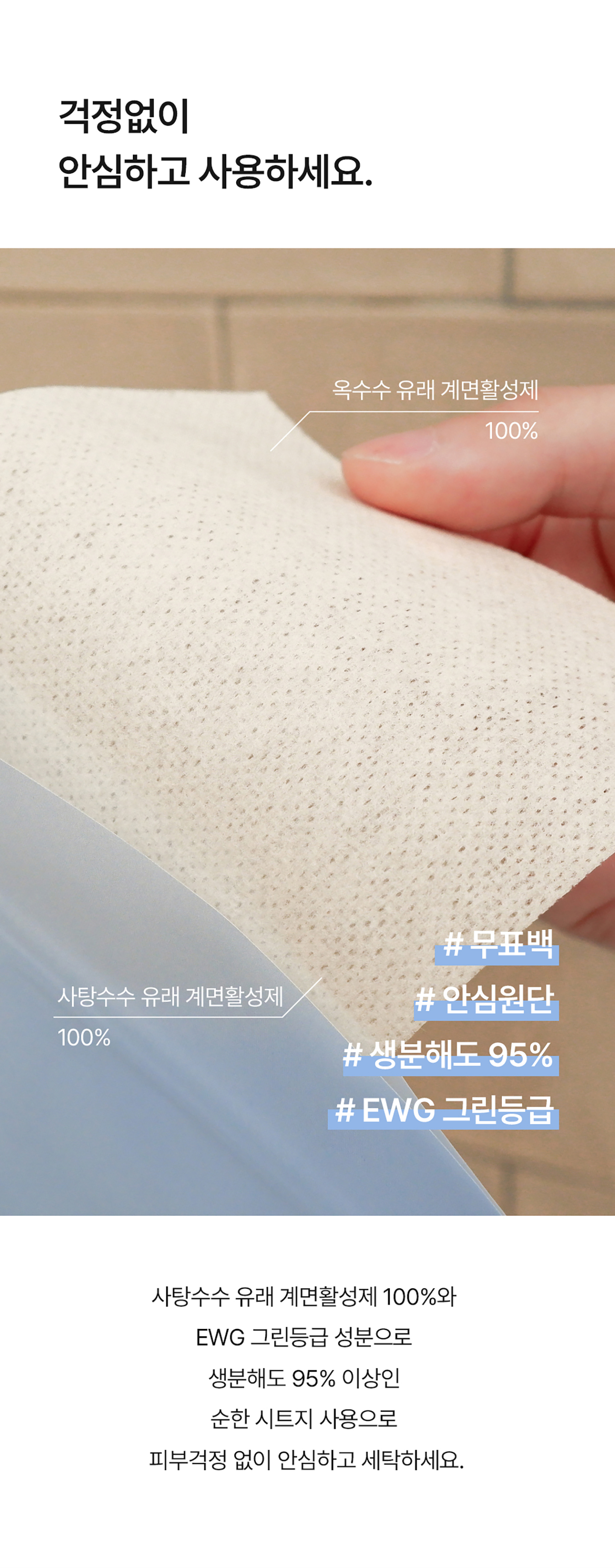 3. EWG 그린등급 성분으로 생분해도 95% 이상인 순한 시트지 사용