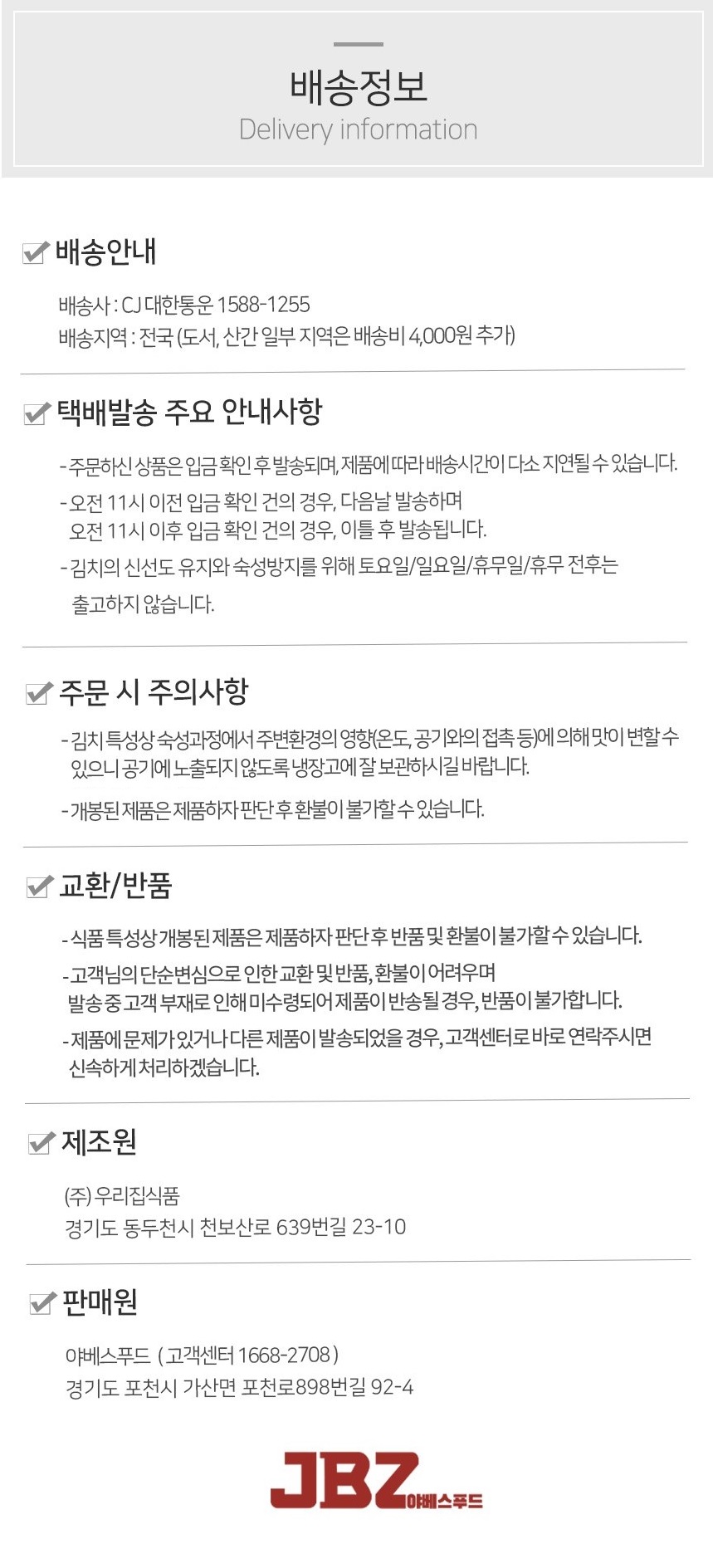 * 포기김치 상품 이미지는 예시 사진이며, 해당 사진의 석박지는 제품에 포함 되지 않습니다.