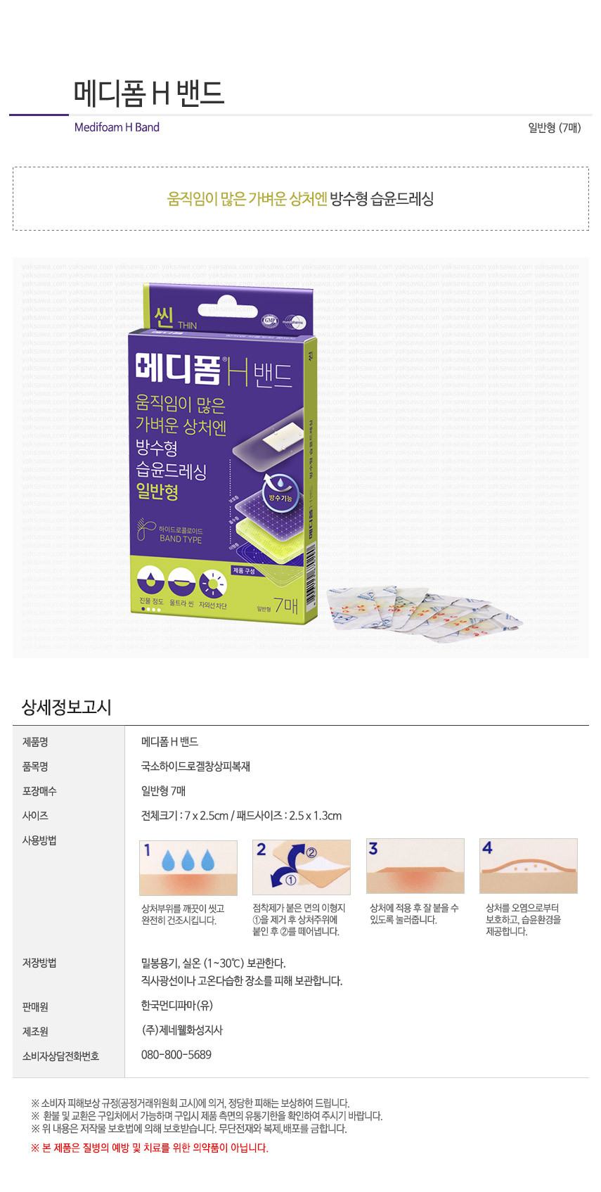 움직임 많은 가벼운 상처에 적합한 방수형 습윤드레싱