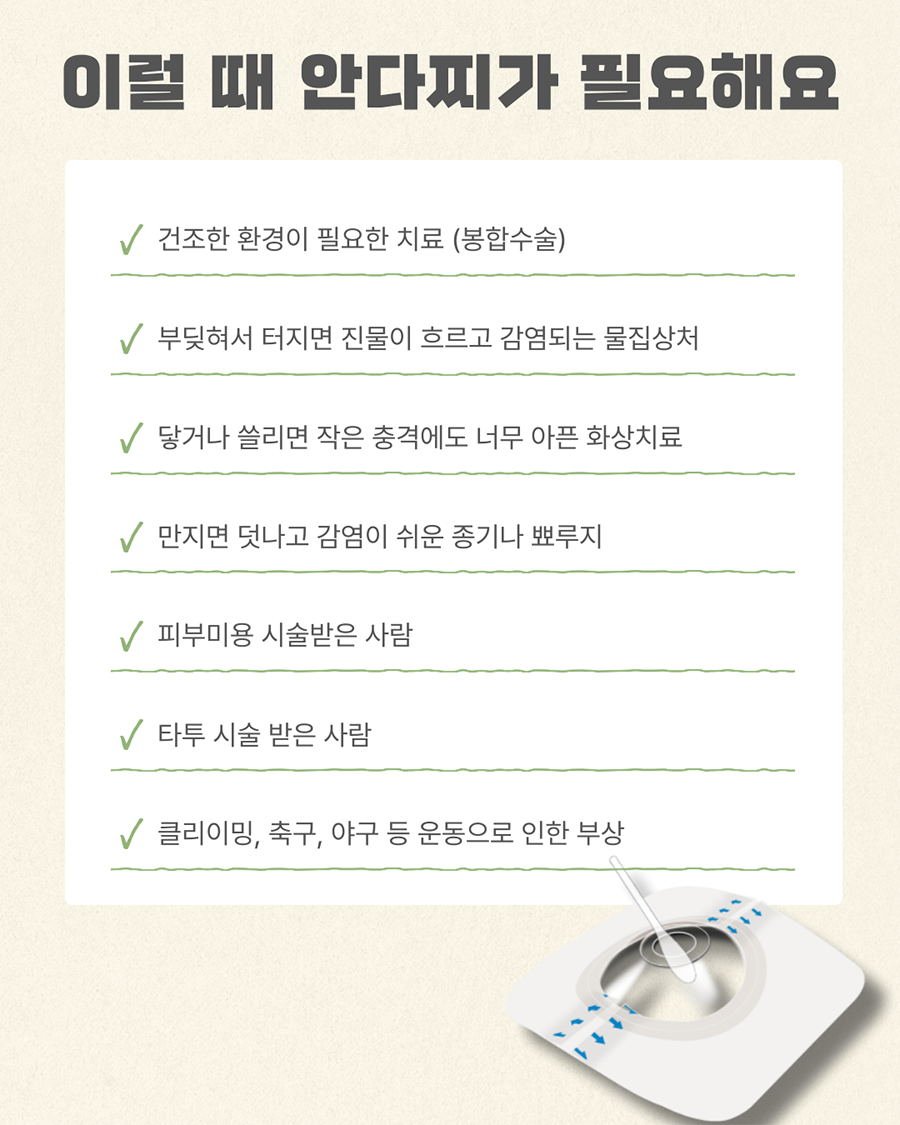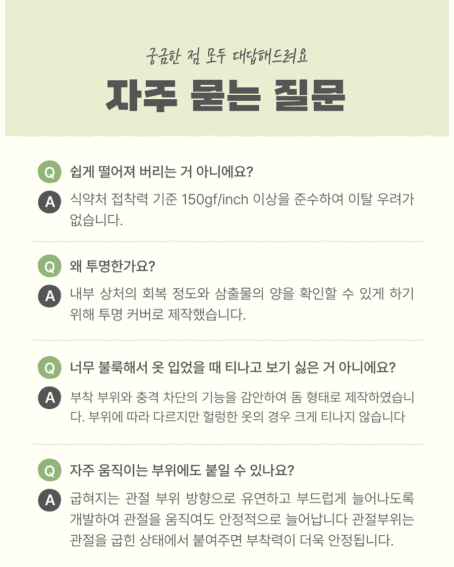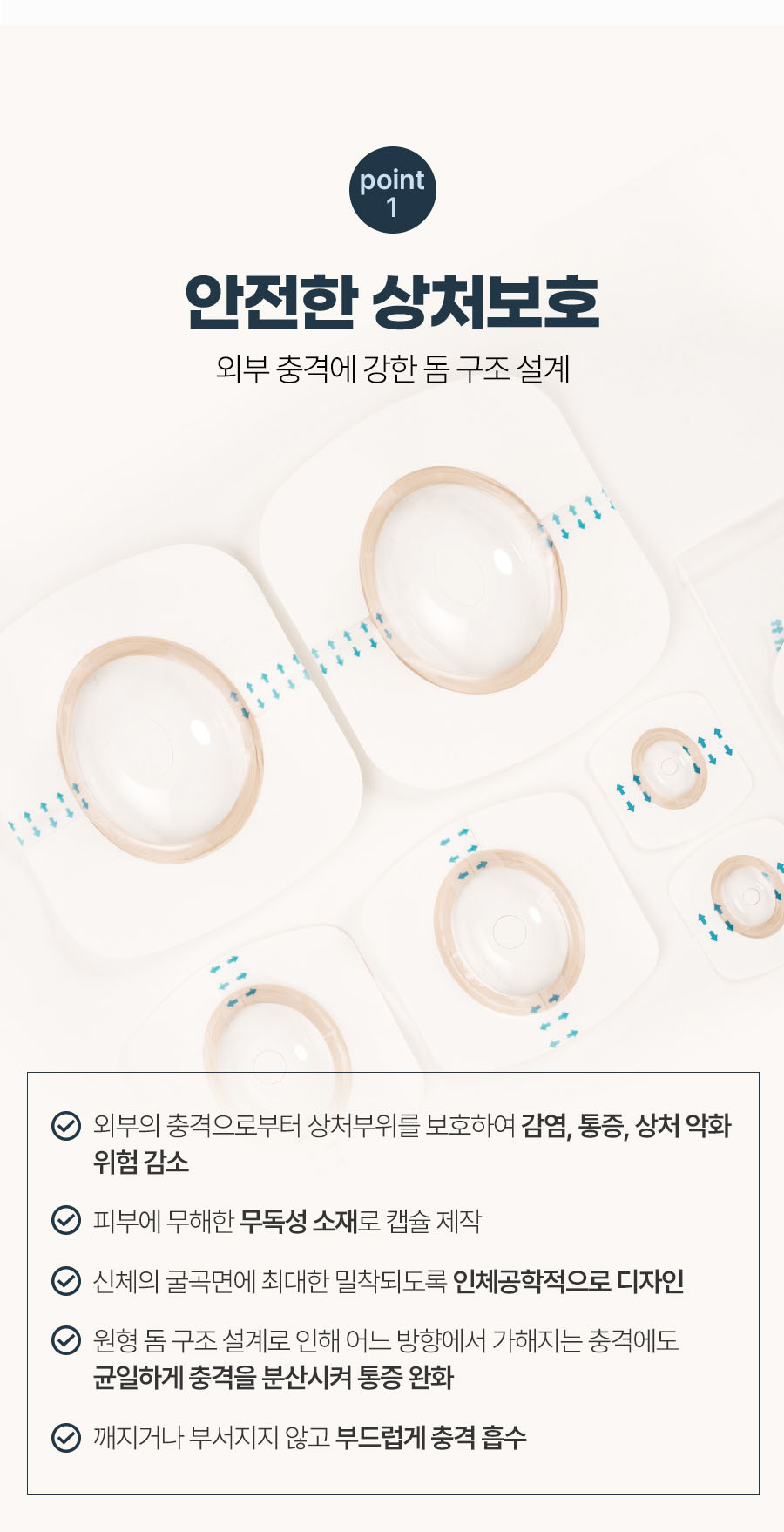 눌리거나 스쳐도 아프지 않게, 만지거나 긁고 싶어도 닿을수 없게 상처치료 가능해요~