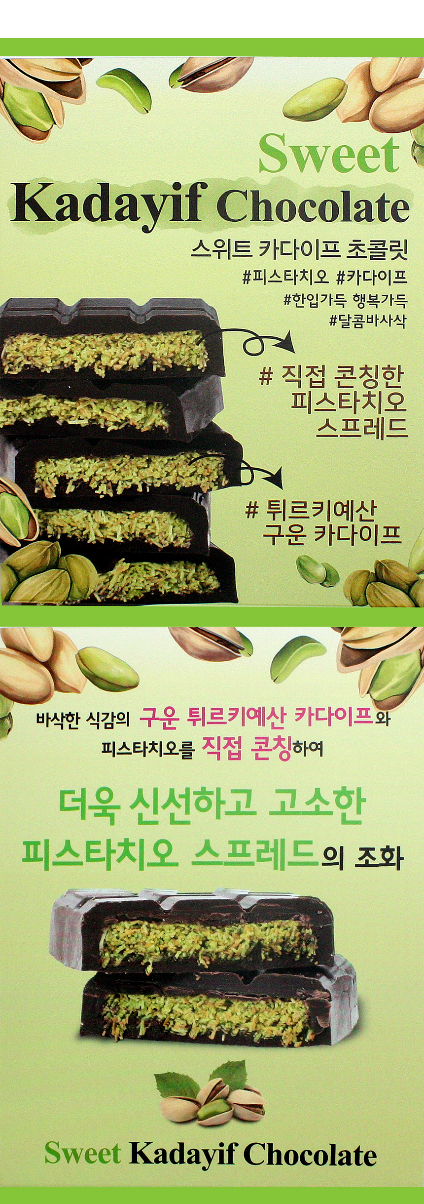 최고급 재료와 전통적인 노하우로 만든 두바이 초콜릿입니다. 찐 레알 카다이프 초콜릿에 깊은 맛을 느껴보세요