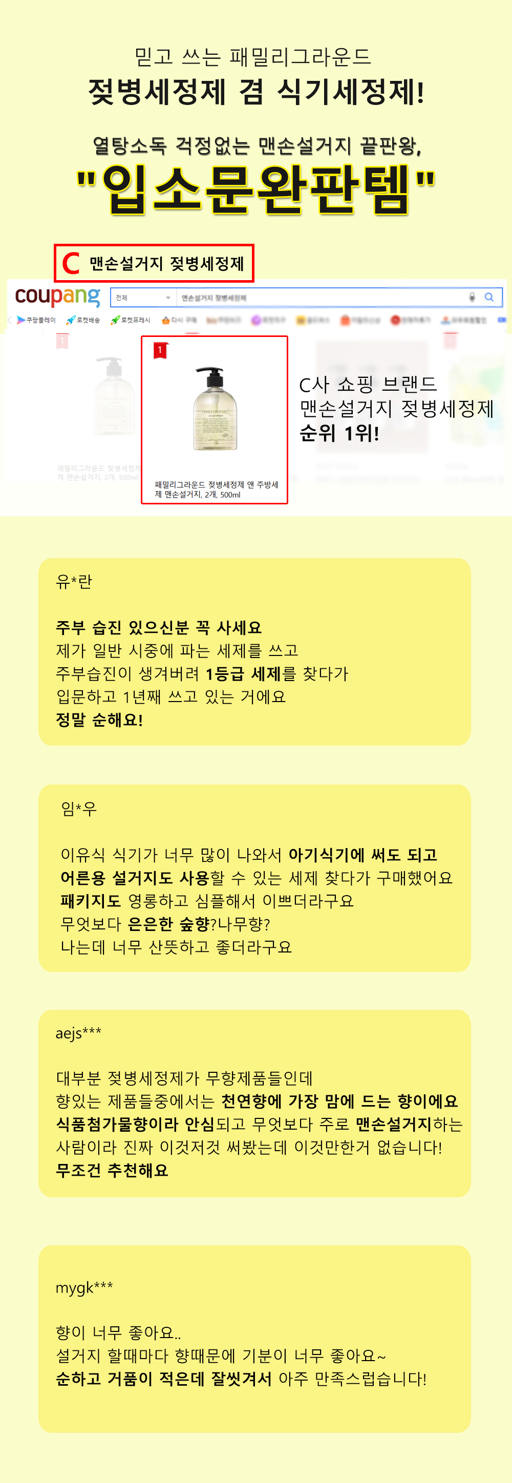 패밀리그라운드 맨손설거지 비건 주방세제겸 젖병세정제 500ml