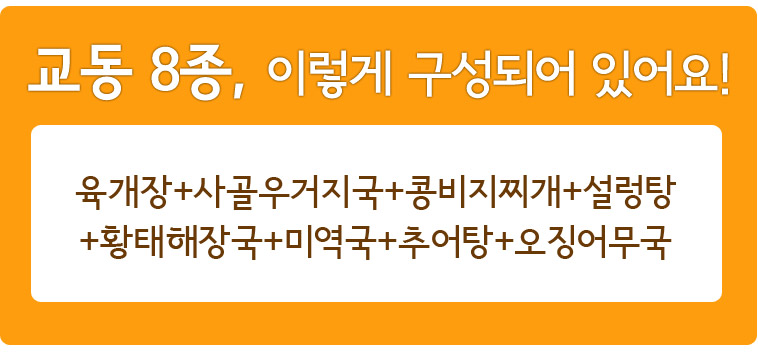 [육개장]500g [사골우거지국]500g [콩비지찌개]500g [설렁탕]500g [황태해장국]500g [미역국]500g [추어탕] 450g [오징어무국] 500g