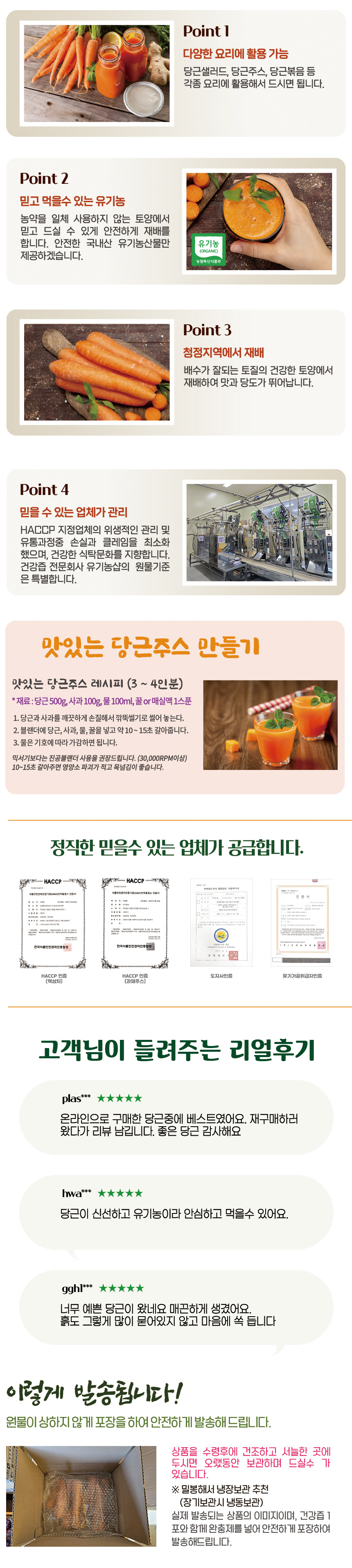 맛좋고 싱싱한 주스용 유기농 못난이당근