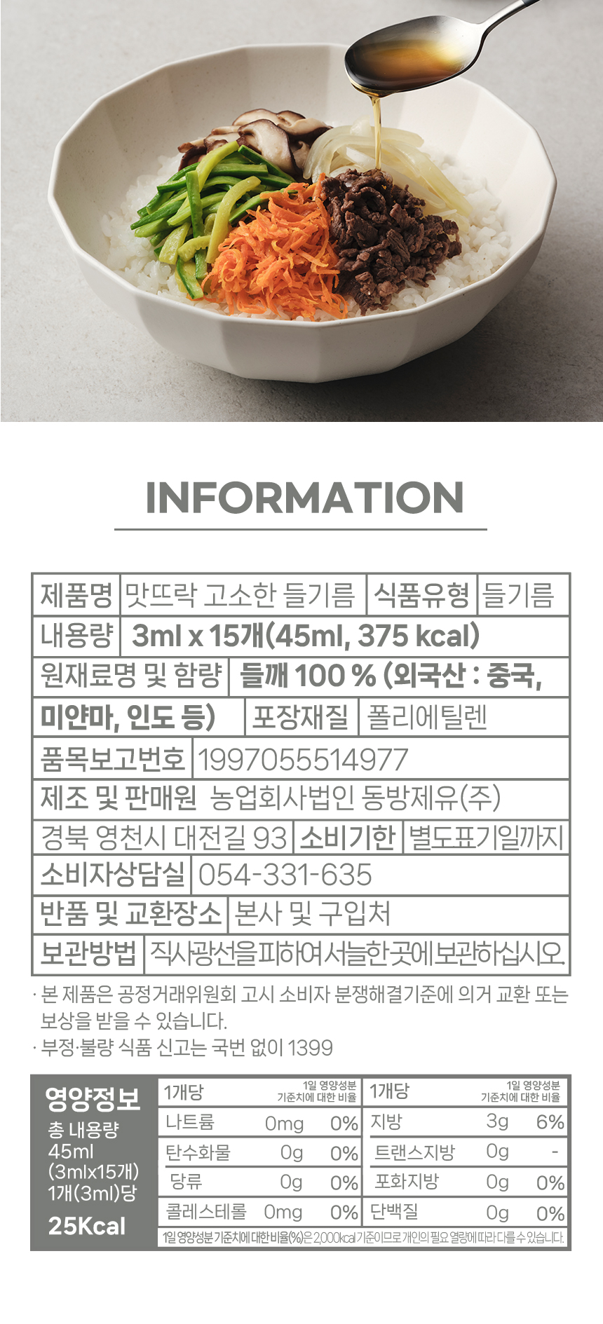 맛뜨락 고소한 들기름/3ml/외국산