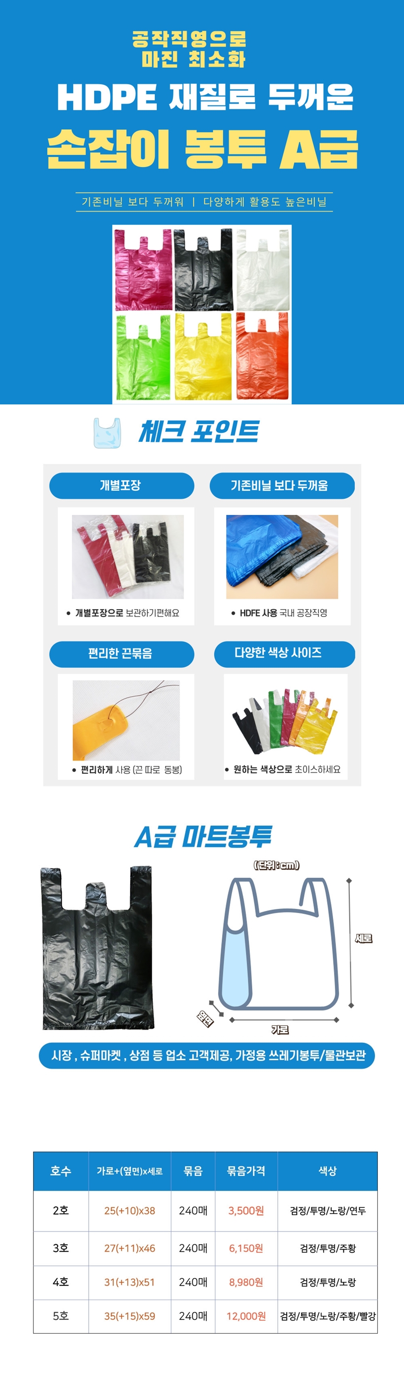 • 손잡이 마트 비닐봉투 포장봉투(2호/3호/4호/5호)-A급 240장