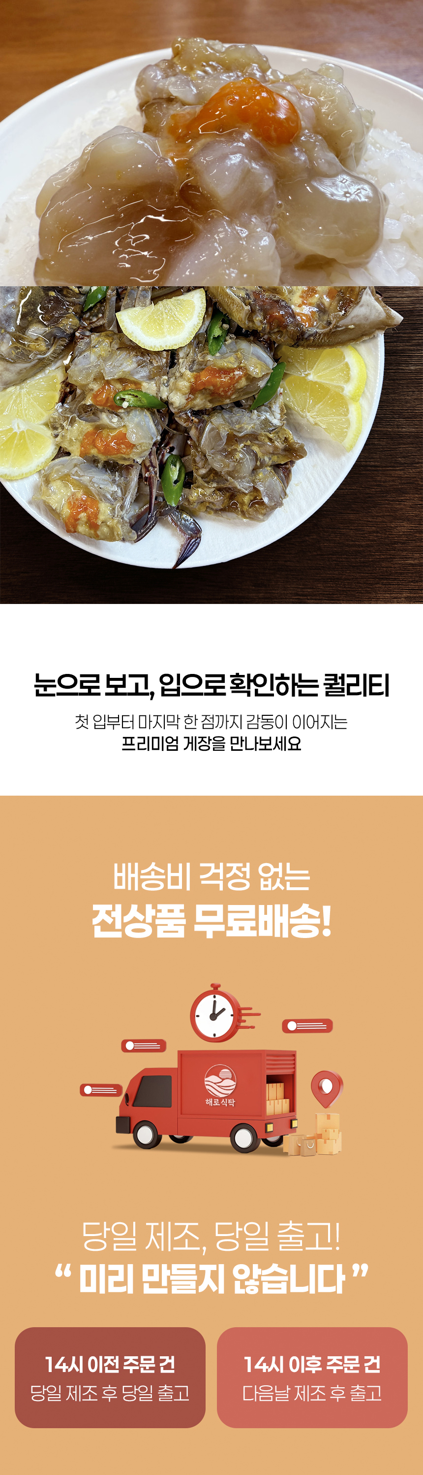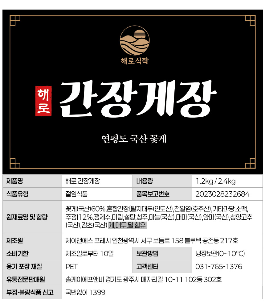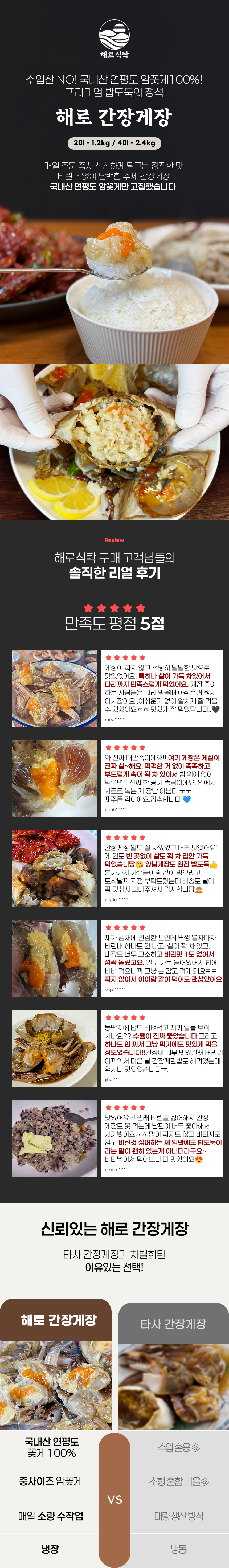 [해로식탁] 국내산 연평도 알배기 암꽃게 간장게장 1.2kg, 1개
