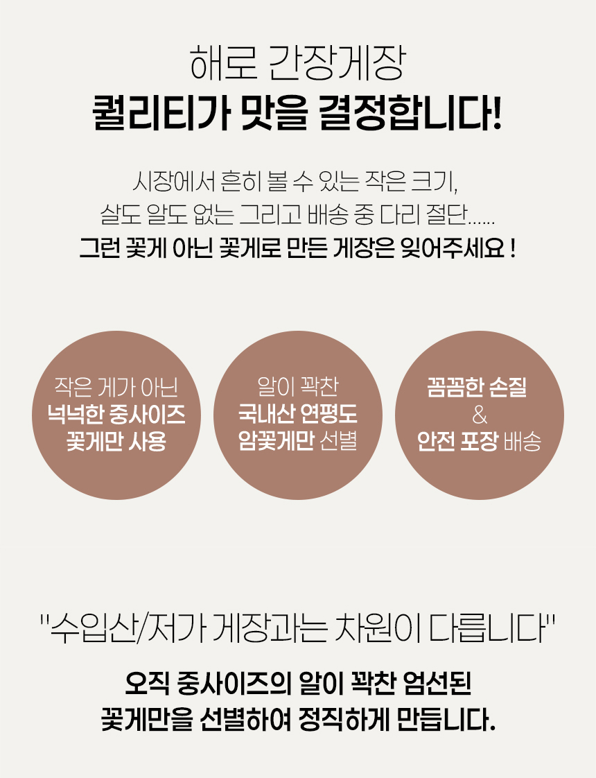 • [해로식탁] 국내산 연평도 알배기 암꽃게 간장게장 1.2kg, 1개