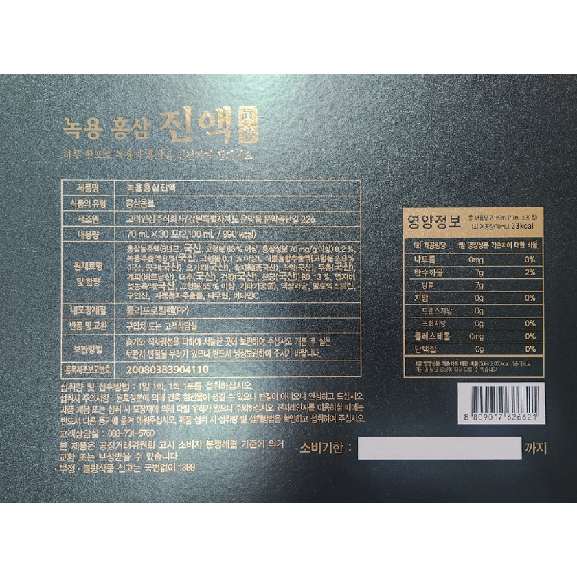 국산녹용와 6년근 홍삼으로 추출한 진액
