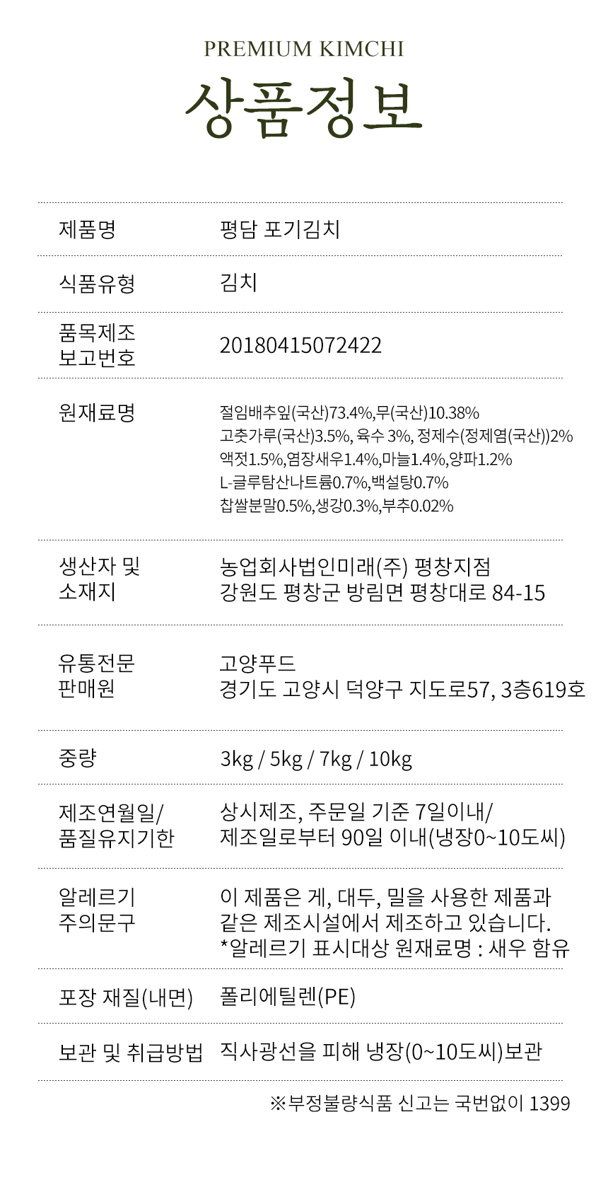 • 비법을 담은 프리미엄 국내산 100% 포기 김치