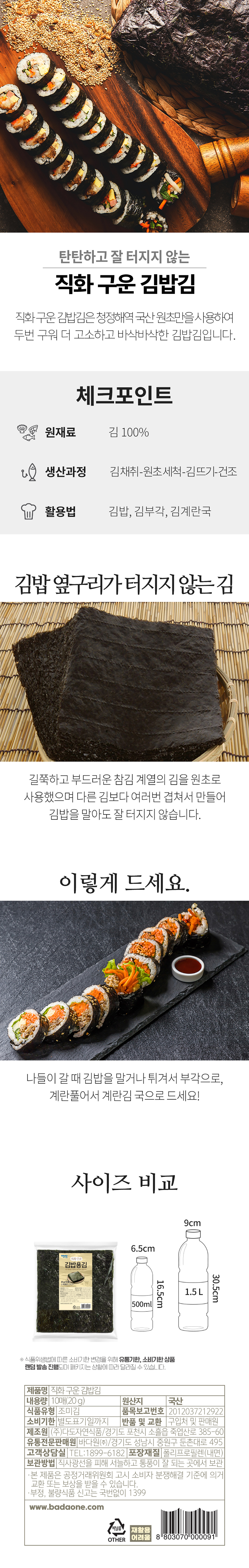 [바다원] 직화구운 김밥용김 10매입 1봉, 20g
