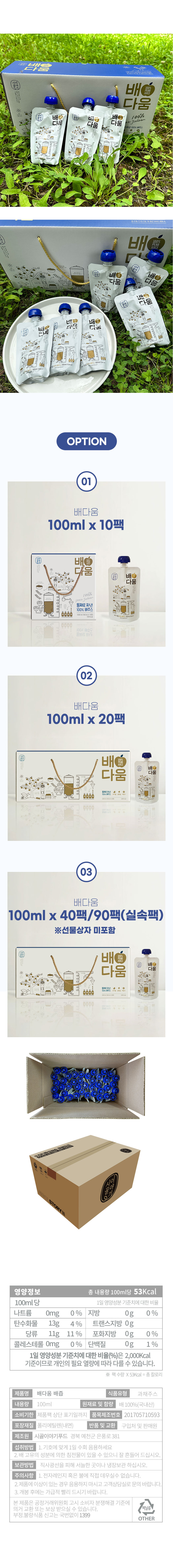 100% 국내산 배만 오롯이 배즙