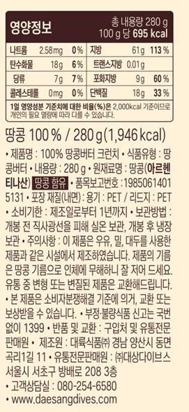 • 복음자리 무첨가 100% 땅콩버터(크런치) 280g