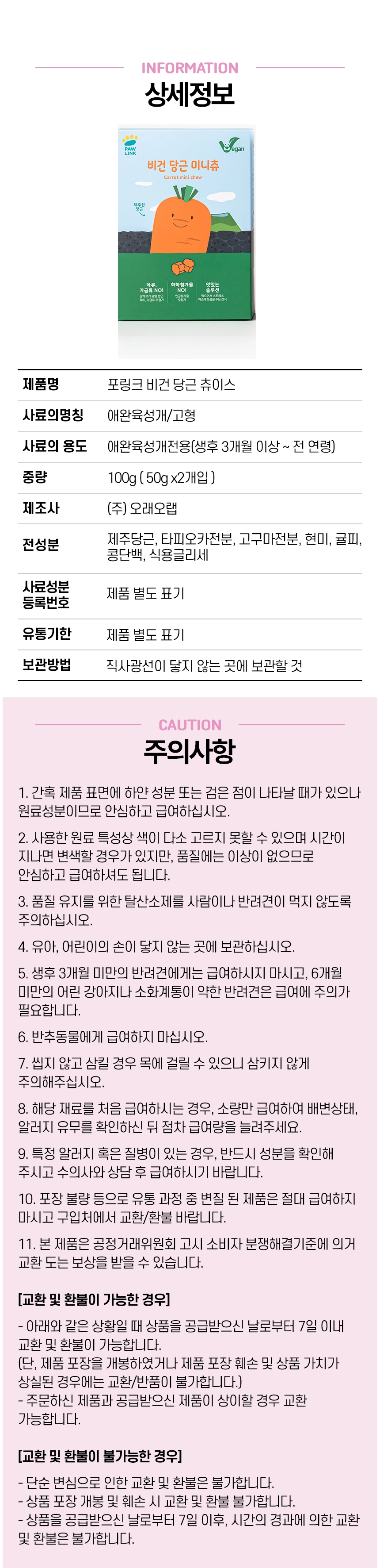 제주 구좌 당근으로 만든 저알러지 비건간식, 무방부제·글루텐프리, 소형견도 먹기 좋은 미니 사이즈 영양 간식