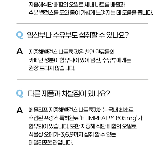 [원재료명][엘림리얼 핏 밸런스(혼합음료)] 정제수, 에리스리톨(감리료), 당근착즙액(튀르키예산), 세븐베리농축액(세븐베리농축액 : 미국산), 시클로덱스트린액, 기타농산가공품[식물혼합분말(엘림리얼)/스페인산], 토마토농축액, 락스로스 리퀴드, 향료(토마토향), 효소처리스테비아(감미료), 무수구연산, 잔탄검, 구연산삼나트륨, 수크랄로스(감미료), 27종과일야채혼합농축분말 [프리미엄 냉압착 페릴라오일(기타식물성유지)] 들기름(냉압착 페릴라유 / 들깨:국산) ※캡슐기제 : 젤라틴(우피), 정제수, 글리세린, 치자황색소, 이산화티타늄(착색료) [에필리프 지중해오일(기타 식용유지가공품)] 올리브유(스페인산), 아르간유(모로코산), 기타 식용유지가공품[에필리프 밸런스오일 / 아몬드오일(아몬드: 미국산), 호박씨유(호박씨:국산)], 비타민E(dl-a-Tocopherol) ※캡슐기제 : 젤라틴(우피), 정제수, 글리세린, 치자황색소, 이산화티타늄(착색료), 치자청색소 우유, 토마토, 쇠고기 함유