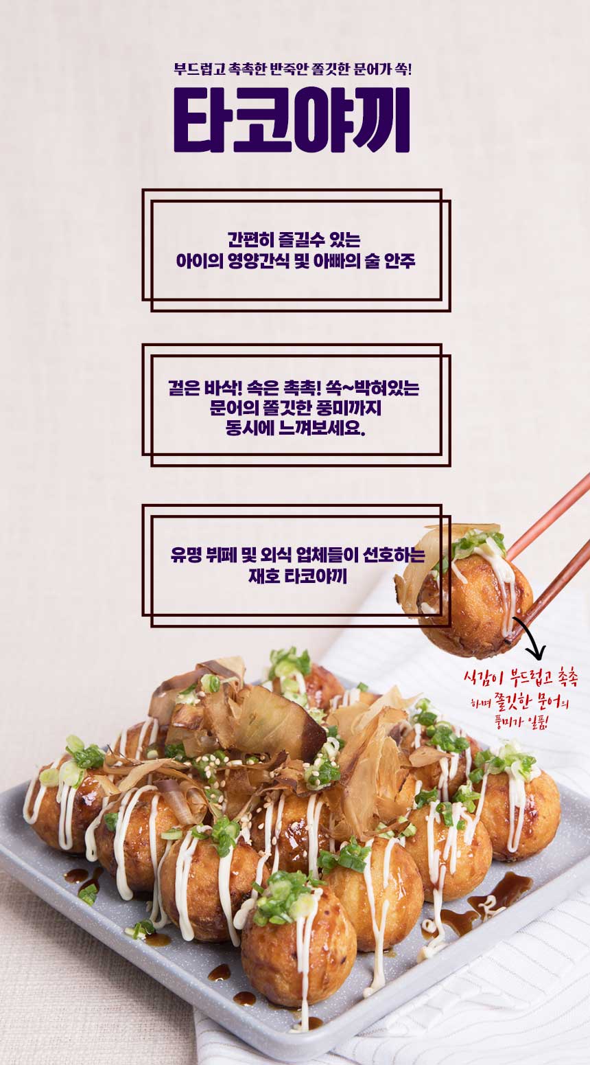 ● 겉은 바삭! 속은 촉촉! 쏙~ 박혀있는 문어의 쫄깃한 풍미까지 동시에 느껴보세요.