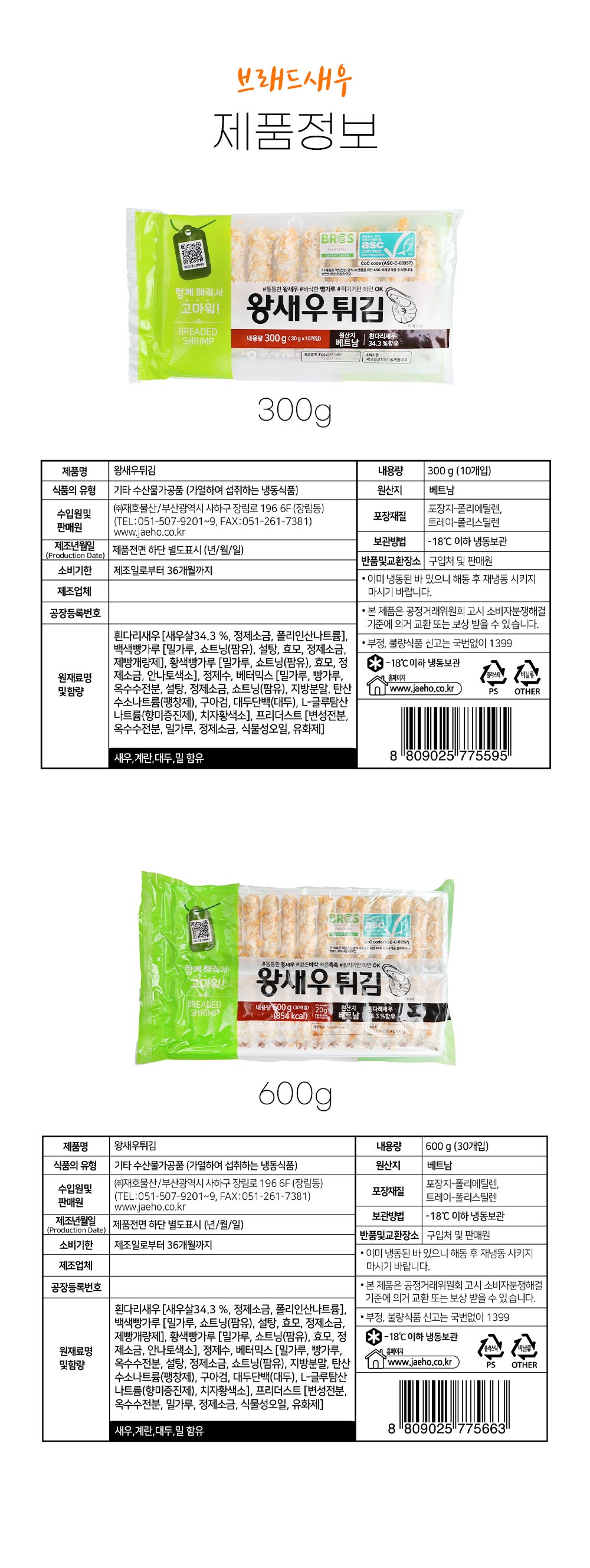 • [재호식품] 왕새우튀김 300g(10개입), 600g(30개입)