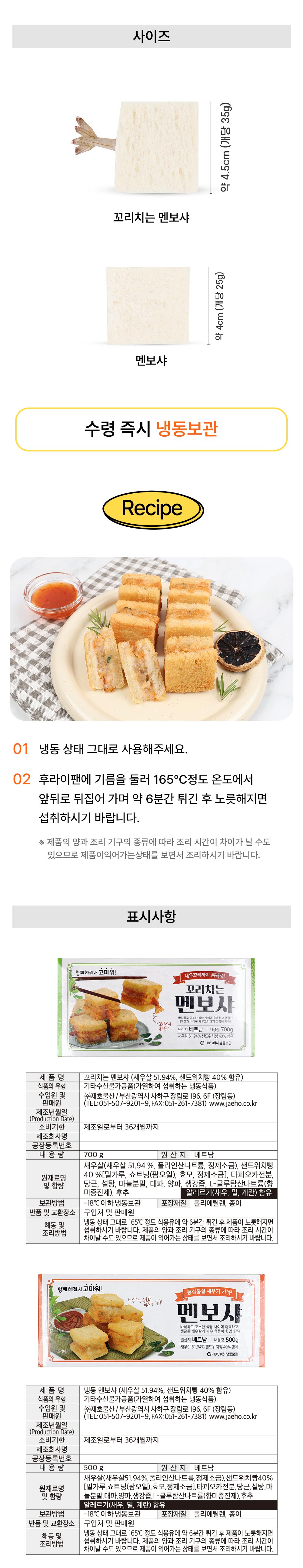 • [재호식품] 멘보샤 500g(20개입), 꼬리치는멘보샤 700g(20개입)