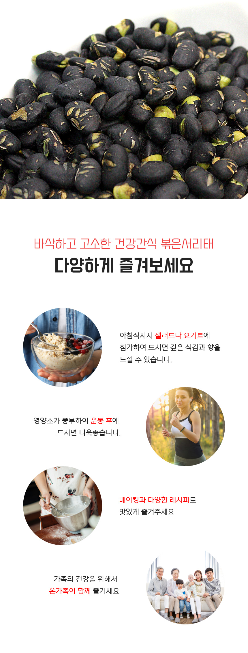 서리태는 볶아내어 오독오독 고소하고 바삭하여 건강하게 섭취가능한 주전부리입니다.