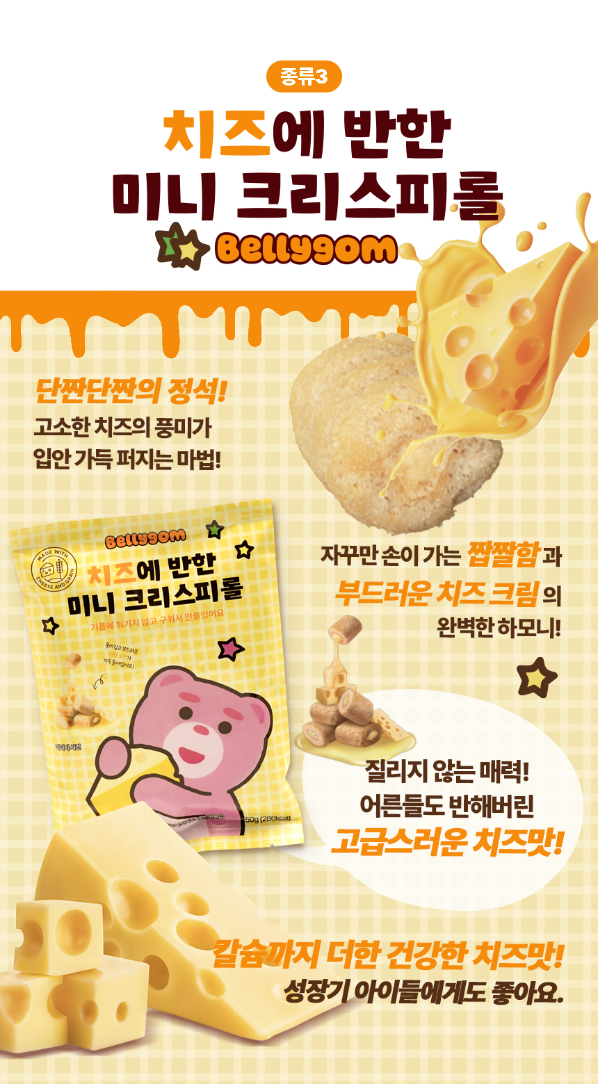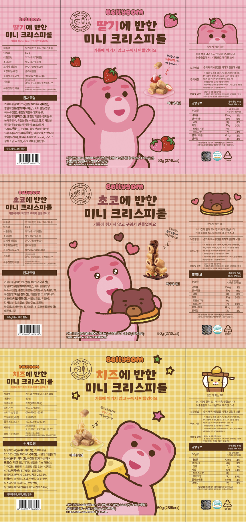 • 벨리곰 미니 크리스피롤 50g x 3개 (딸기맛 / 초코맛 / 치즈맛)