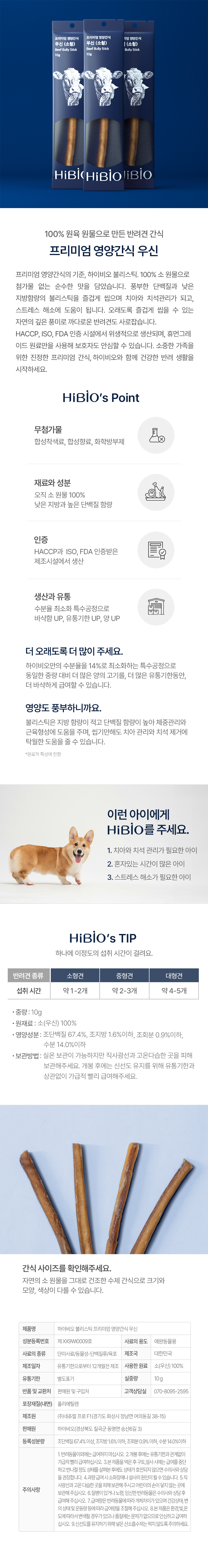 프리미엄 영양간식 강아지껌 우신(불리스틱) 100%