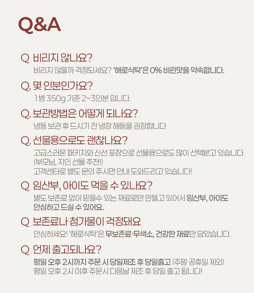 1. 해동은 냉장 해동을 추천 드리며 냉장보관시 변질의 우려가 있으니 수령 후 가급적 빠른시간 내 섭취하시기 바랍니다 2. 이미 냉동된 바 있으니 해동 후 재 냉동 하지 마십시오 3. 이 제품은 대두, 밀, 새우, 오징어, 조개류를 사용한 제품과 같은 제조 시설에서 제조하였습니다 4. 정당한 소비자의 피해에 대해 교환 또는 환불 받으실 수 있습니다
