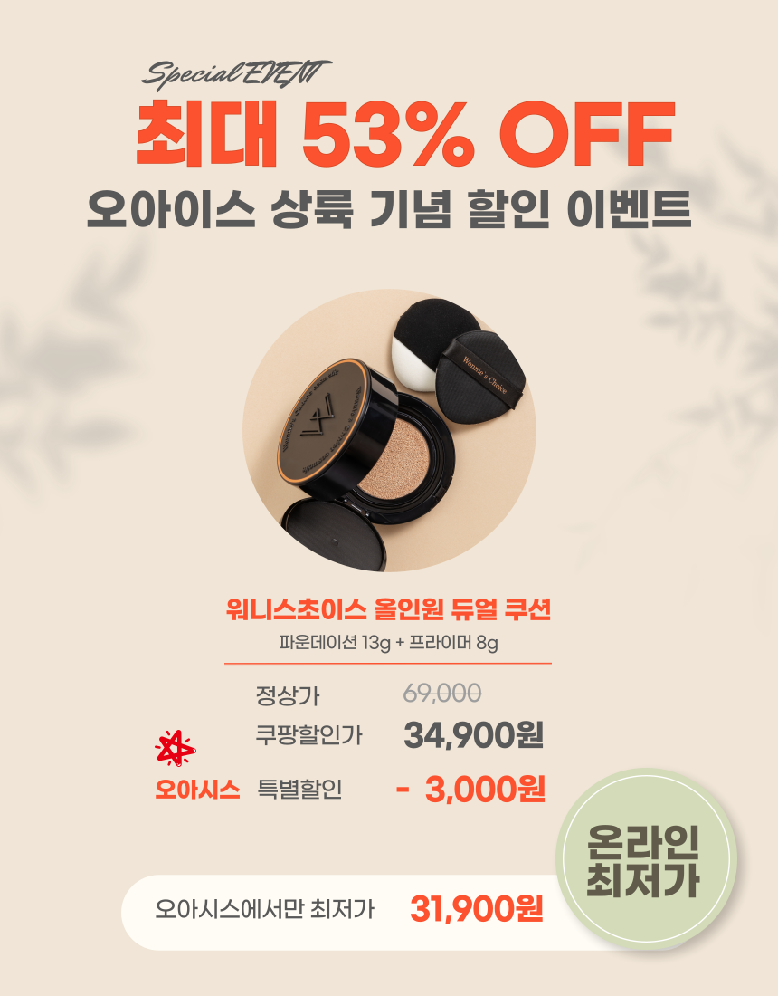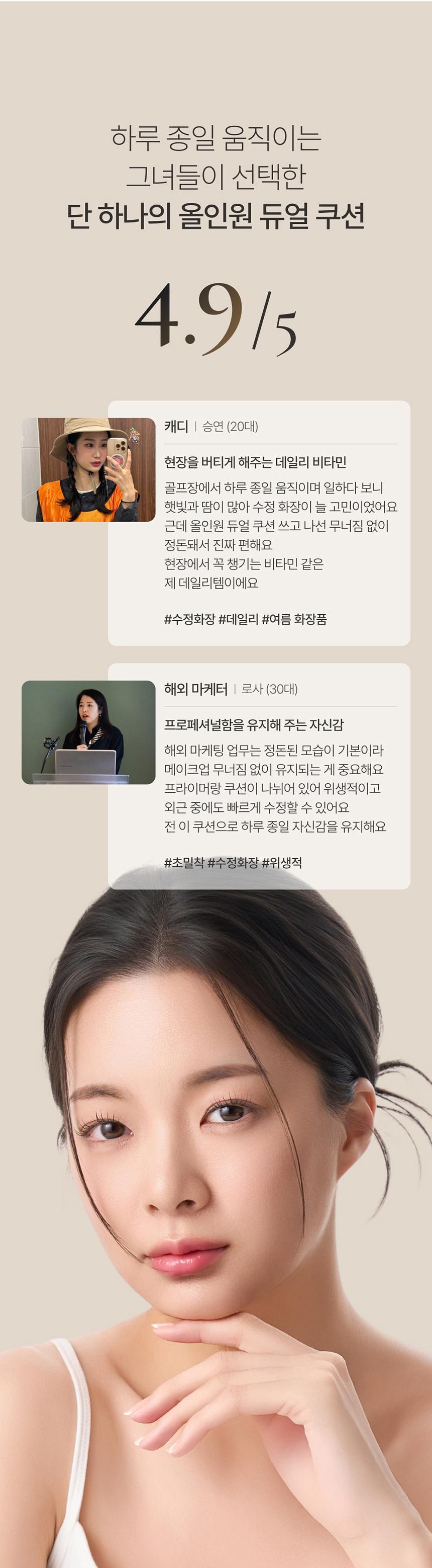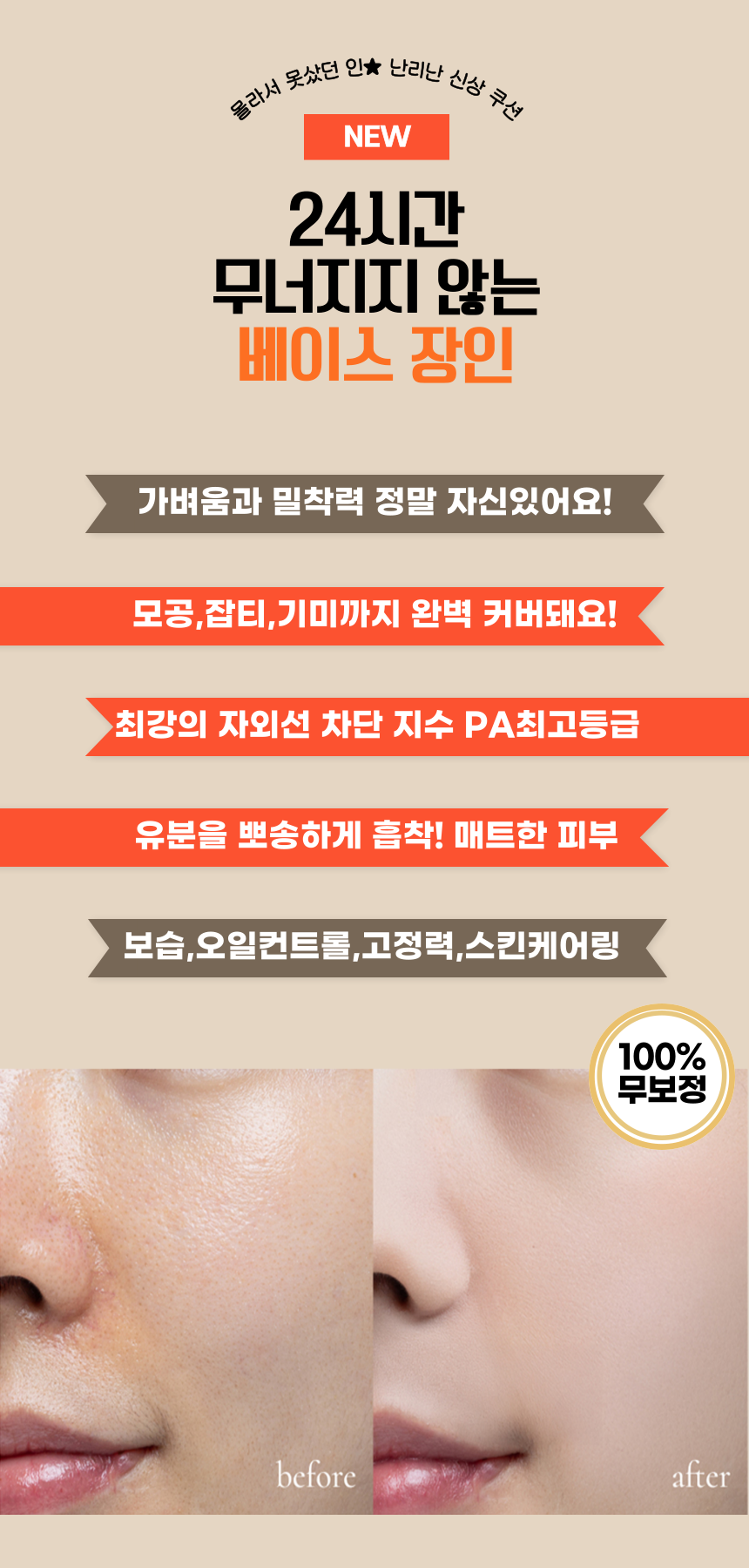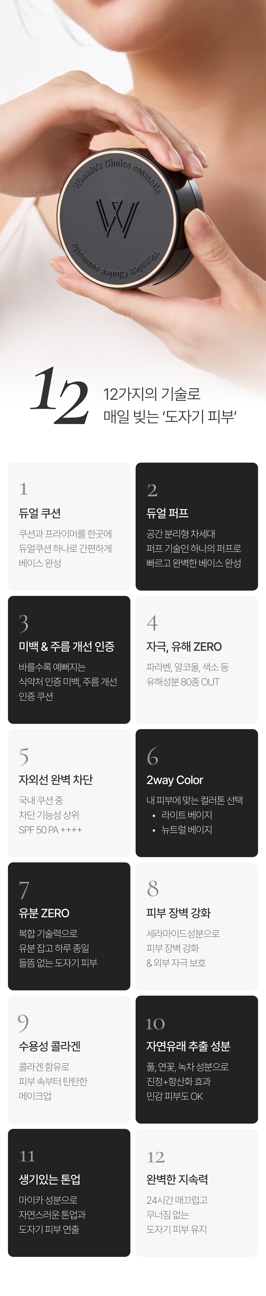 모든 피부에 사용 가능. 라이트베이지[21호] 뉴트럴베이지[23호], 듀얼 퍼프 포함