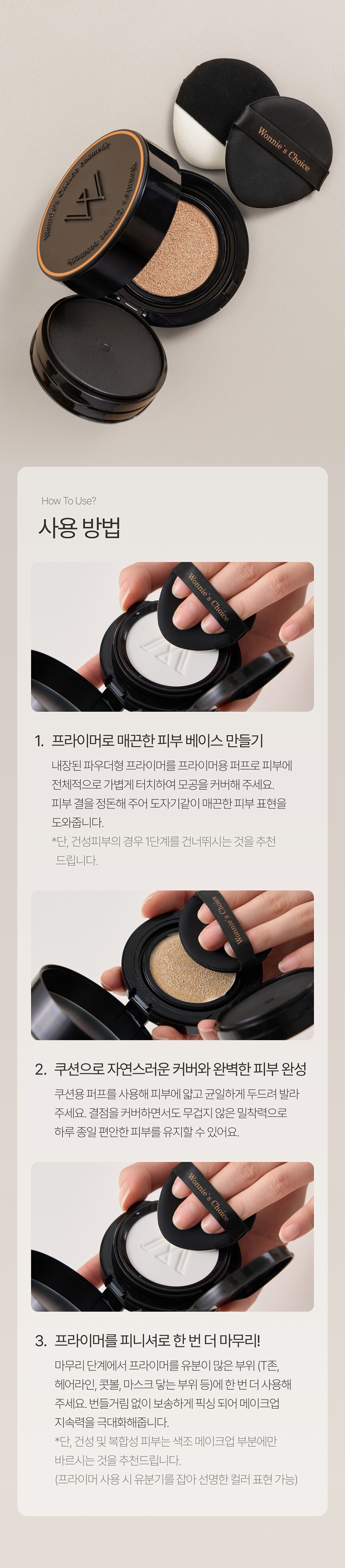 내장된 퍼프에 내용물을 적당히 묻혀 얼굴 전체에 가볍게 두드리며 발라주세요.
