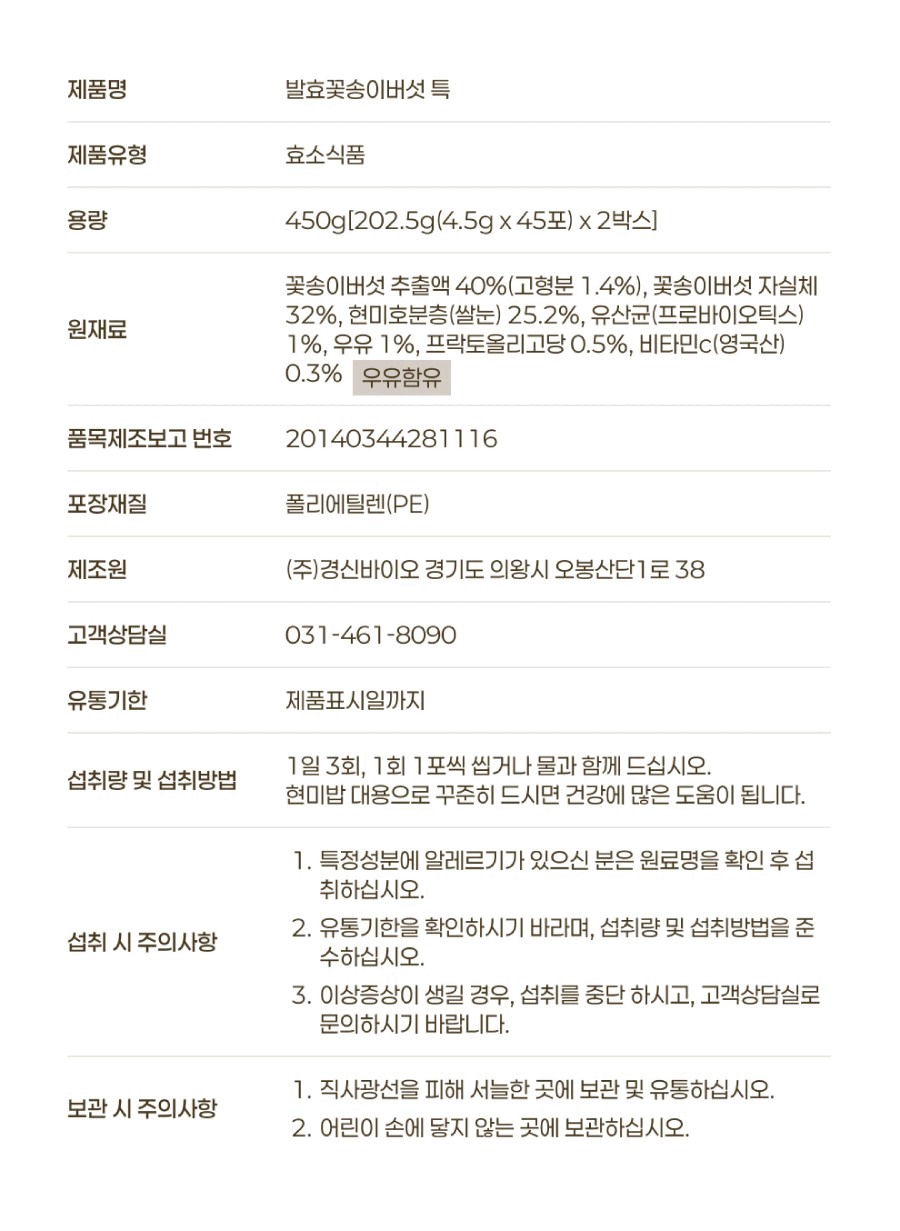 안전한 제품을 가족같은 마음으로 전하는 기업 믿을 수 있는 품질 보장, 발효 꽃송이버섯 효소