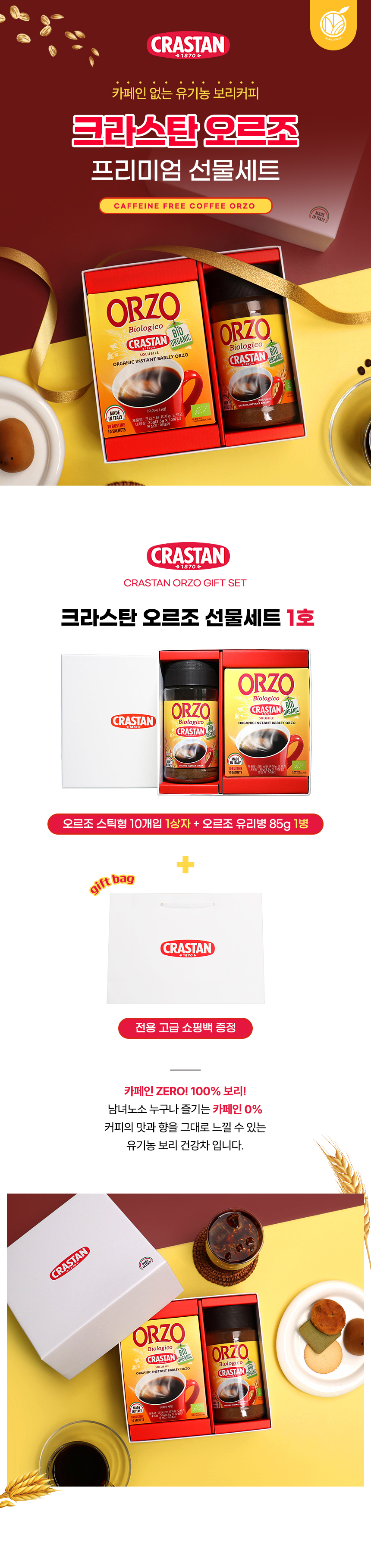 [쇼핑백] 크라스탄 유기농 오르조 선물세트 1호 무카페인 보리커피 커피대신