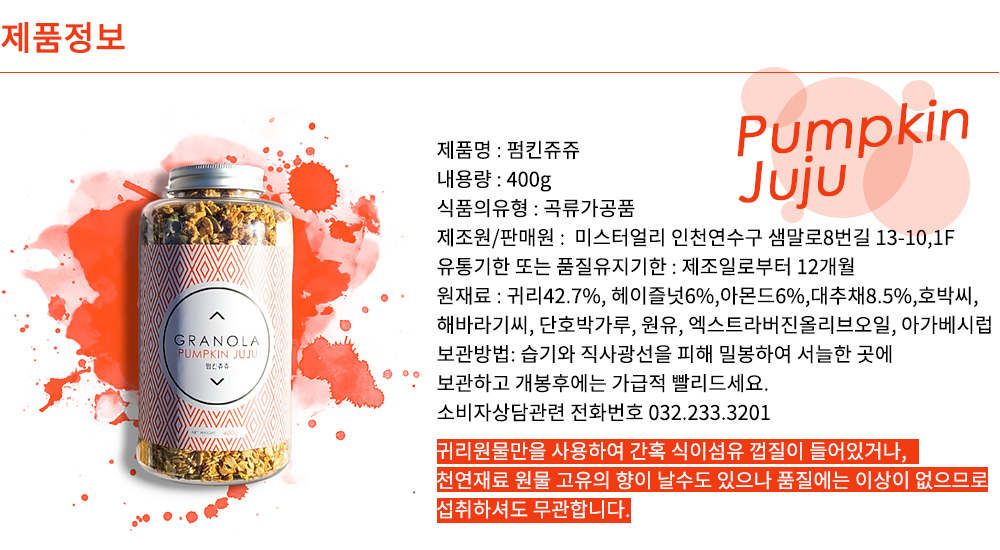 • 부드럽고달콤한 국산단호박 무설탕 저당 오트밀 그래놀라200g