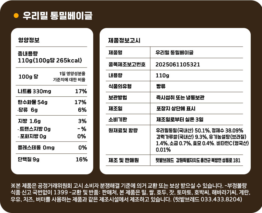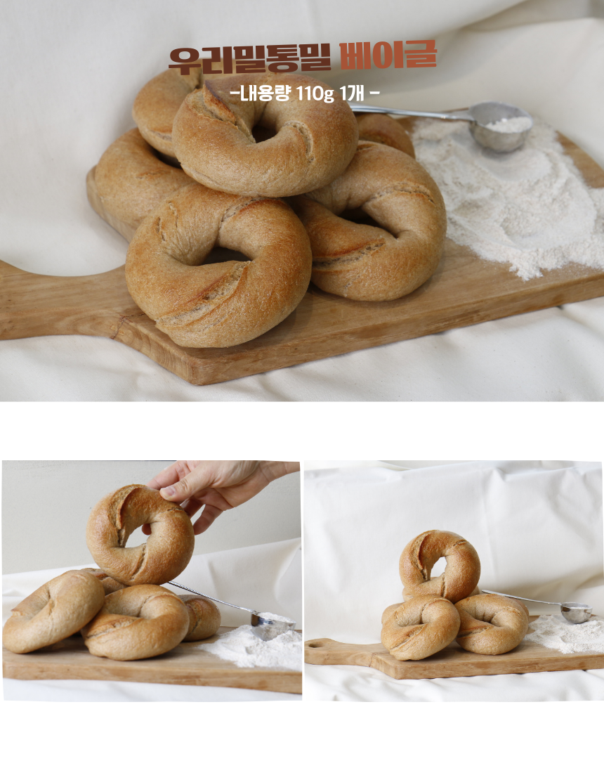 • 통밀 베이글 우리밀 천연발효 통곡물 건강 비건 빵 110g