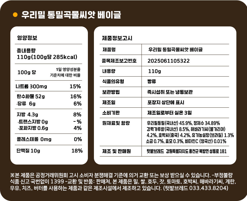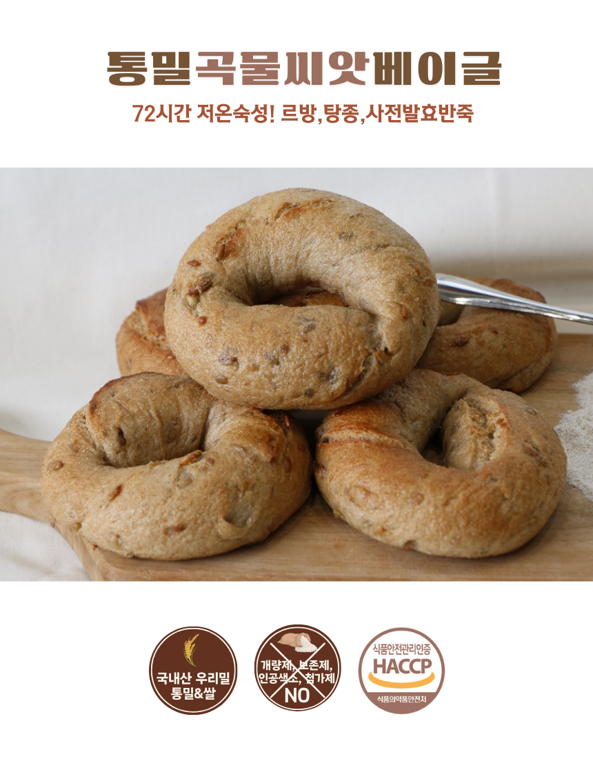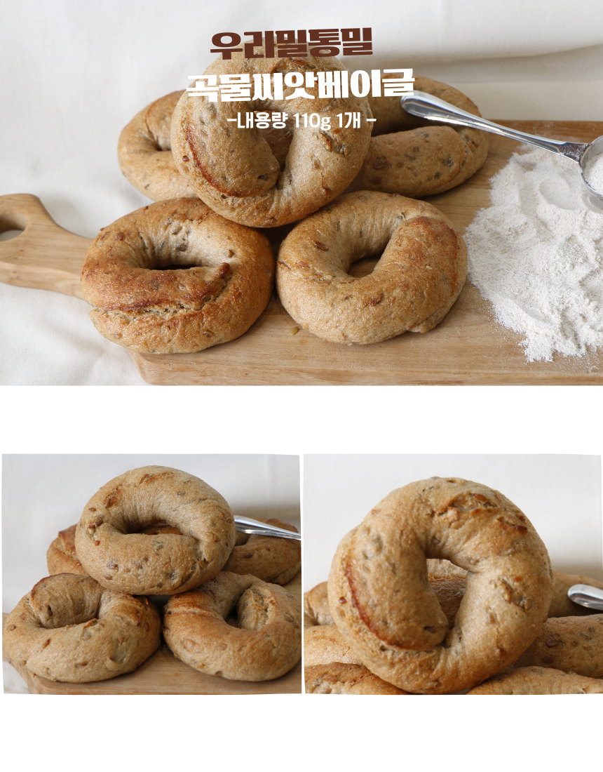 통밀 곡물 씨앗 베이글 110g 우리밀 천연발효 통곡물 단백질 빵