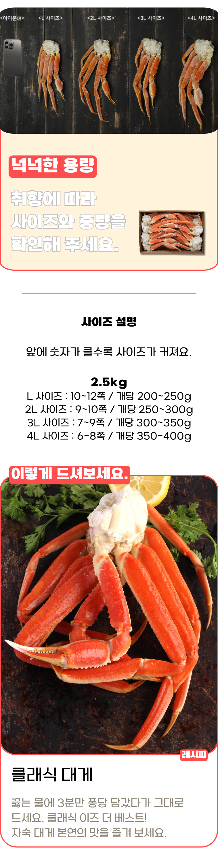 • 연말 선물 수산서원 호텔납품 러시아 자숙대게 현지 급냉 2.5kg 홈파티팩