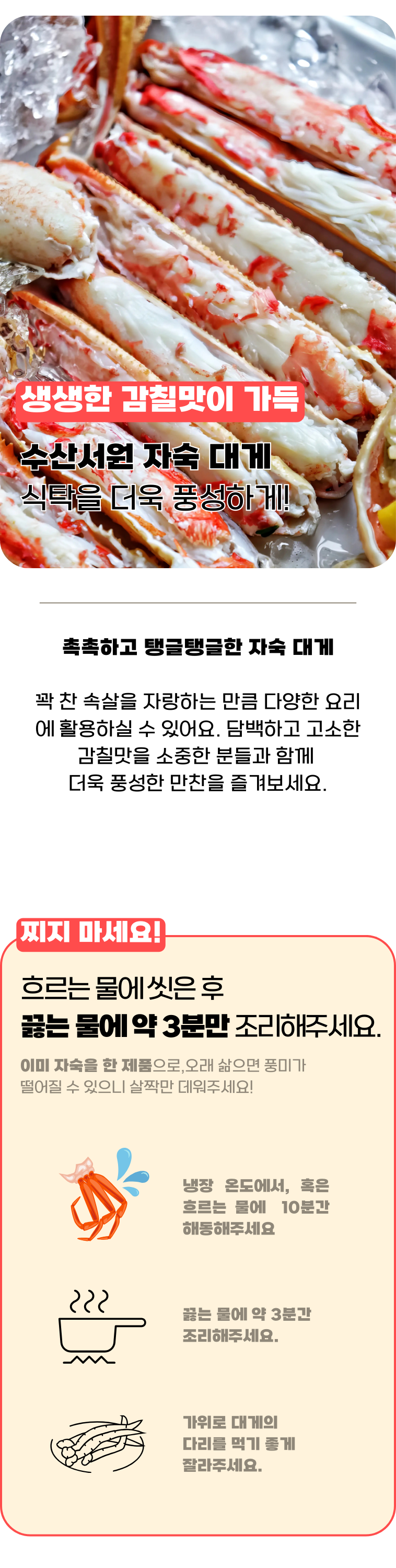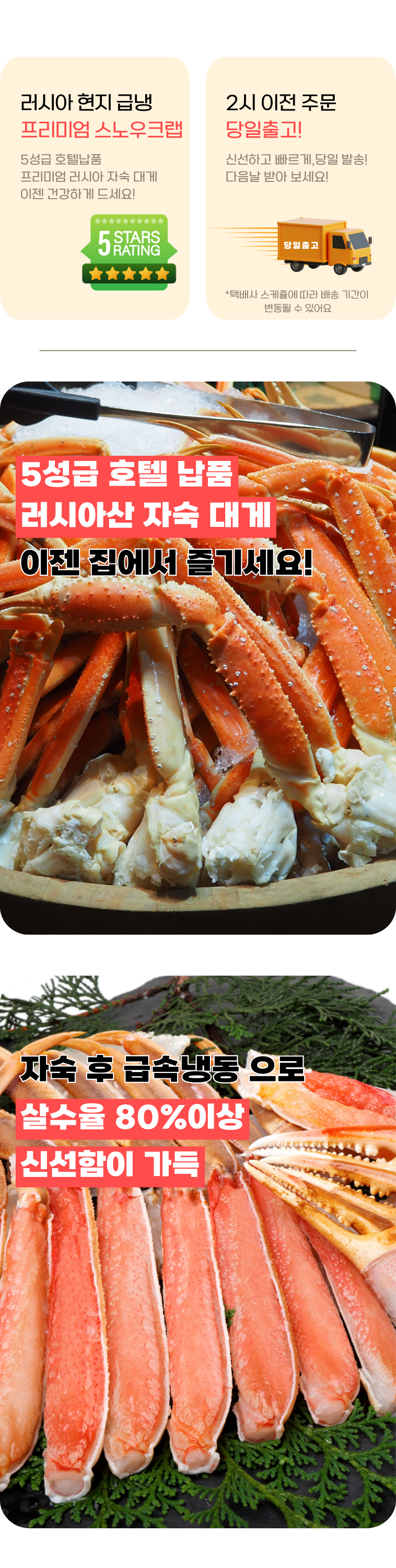 5성급 호텔납품, 살수율 80%이상의 러시아산 프리미엄 자숙 대게를 이젠 집에서 즐겨보세요~