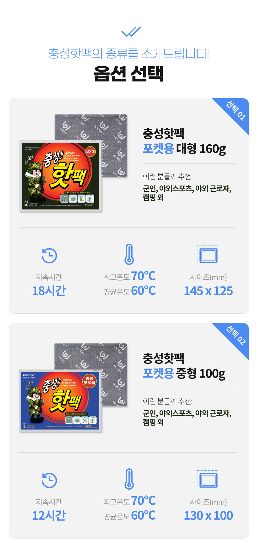 • 충성 핫팩 160g 대용량 대형 군용 보온대